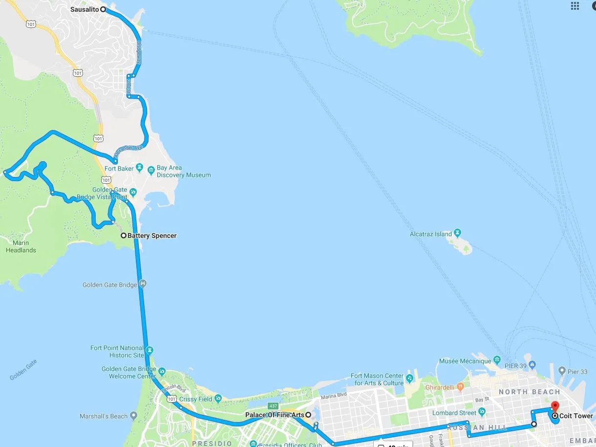 금문교를 볼 수 있는 Spot이 사실 매우 많다. 어림잡아도 열 군데는 쉽게 될 것 같다. 그리고 각 장소마다 다른 매력을 뽐낸다. 그런데 현지에 아무런 연고나 정보가 부족한 관광객들이 오게 되면 대부분 가장 정직한 스팟으로 간다. 금문교 바로 앞에 위치한 뷰포인트를 가는 것이다. 아무래도 대중교통이나 투어버스로 갈 수 있는 곳은 제한적일 수밖에 없기에 어쩔 수 없을 것이다. 뭐 그것도 그런대로 나쁘진 않으리라. 하지만 나는 현지인이므로 용납할 수 없는 일이다. 최고의 뷰를 보여주리라..