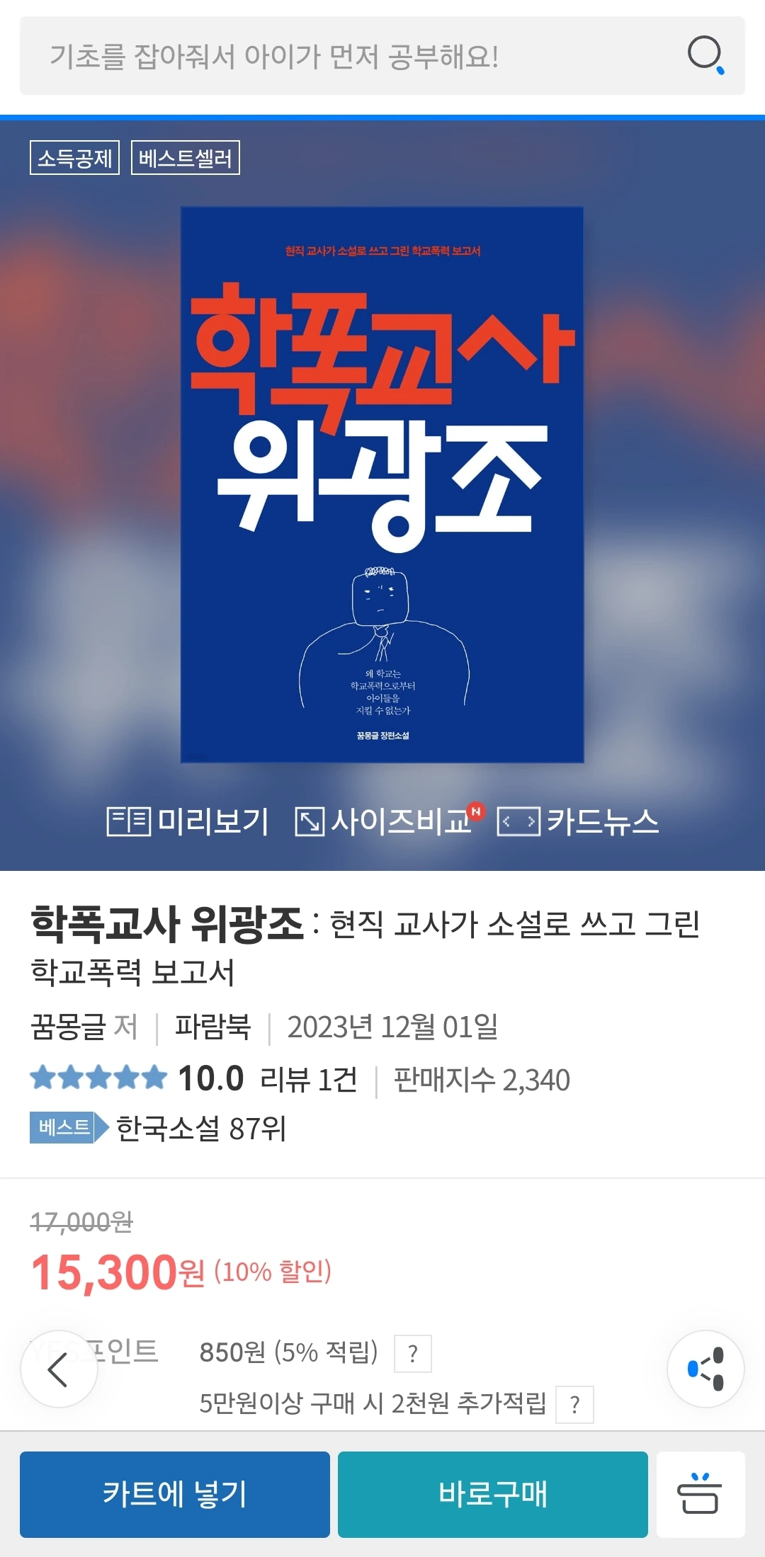 [학폭교사 위광조] 한국소설 80위권 진입(yes24)