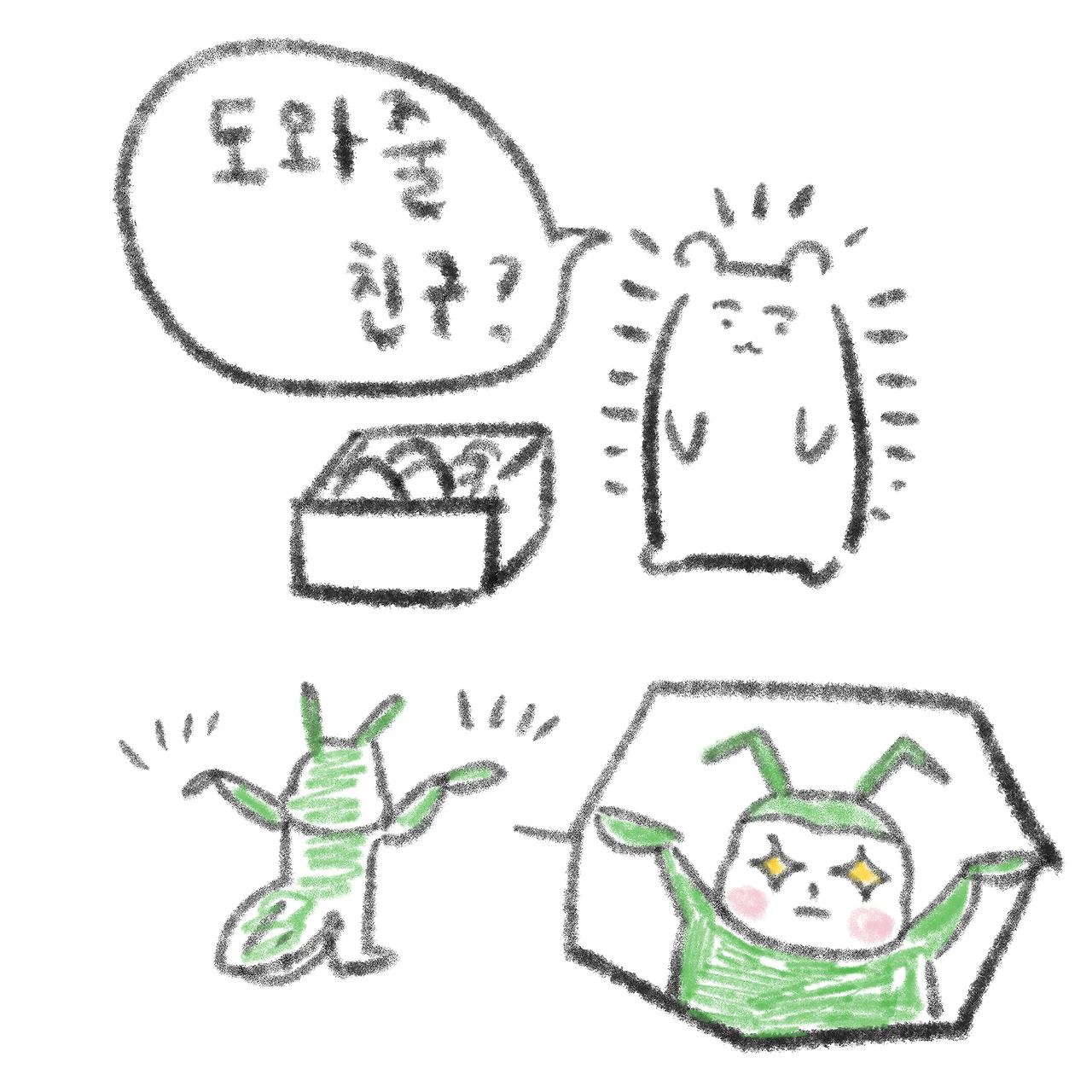 다른 친구들은 술래를 하기 싫어하지만, 당랑권사마귀는 술래 역할을 맡아도 즐겁게 해줘요.