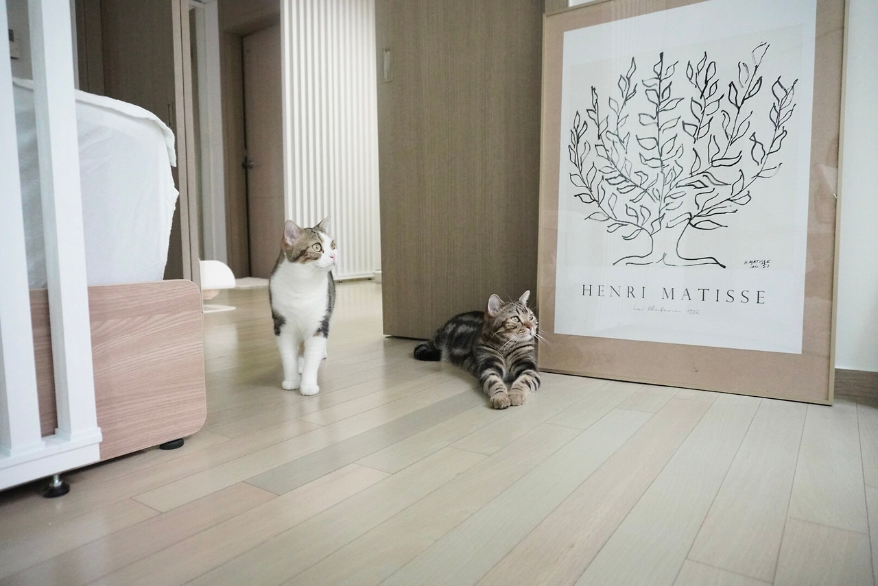 아침 기상은 내 배 위에 올라와 꾹꾹이를 하는 고양이 마리의 배 마사지와 고양이 두루가 밥 달라고 아우성치는 야옹 소리로 시작된다. 아이폰의 알람 소리는 들은 지 오래다. 고양이가 일어나는 시간이 내가 일어나는 시간이 되었다. 흐리고 비 오는 날은 고양이들과 함께 양껏 잔다. 집사가 24시간 밀착 케어(?)하며 함께해서인지 이 녀석들이 우습게도 나의 바이오리듬을 따른다. 나와 같이 자고 같이 일어난다.