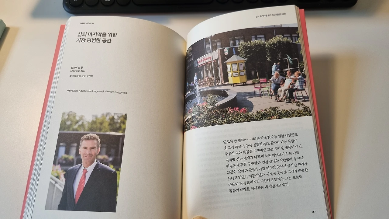 치매환자를 위한 돌봄 공동체 호그벡 마을. 이 마을의 공동설립자인 일로이 반 할의 인터뷰가 수록되었다. 인터뷰 제목을 무척 잘 뽑았다. 인터뷰를 처음부터 끝까지 읽고 나면 삶의 마지막을 위한 가장 평범한 공간 그 자체가 바로 호그벡 마을인 걸 알 수 있다. 호그벡 마을은 치매 환자를 위한 요양시설인데 평범한 마을의 모습으로 공간을 설계하고 디자인했다.