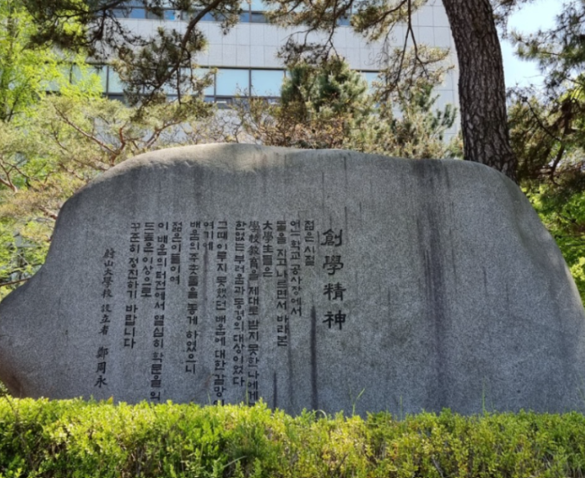 이 돌덩이를 실제로 본 사람은 알 것이다. 이 돌만 보면 공부하고 싶은 마음이 샘솟는다. 하필 또 도서관 바로 앞에 있는데, 지금 보니 감회가 무척 새롭다.