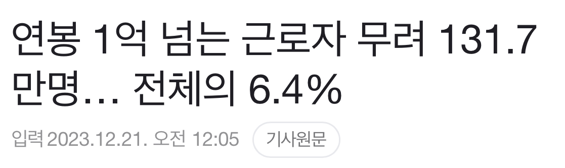 어딜 다니든, 어떤 액수의 연봉을 받든 한 가지 명확한사실은 근로자로 산다는 것이 호락호락하지 않다는 것이다. 23년 억대 연봉을 받은 사람이 대한민국에 131만 명이나 된다고 하는데 이들은 그냥 이 돈을 받는 것이 아니라는 것을 난 잘 알고 있다. 회사에 몸을 갈아성과를 창출하고, 1억 원이라는 숫자 대신 본인의 가치에소중한 무언가를 포기했을 수 있다. 그만큼 회사에 헌신했다는 거다.