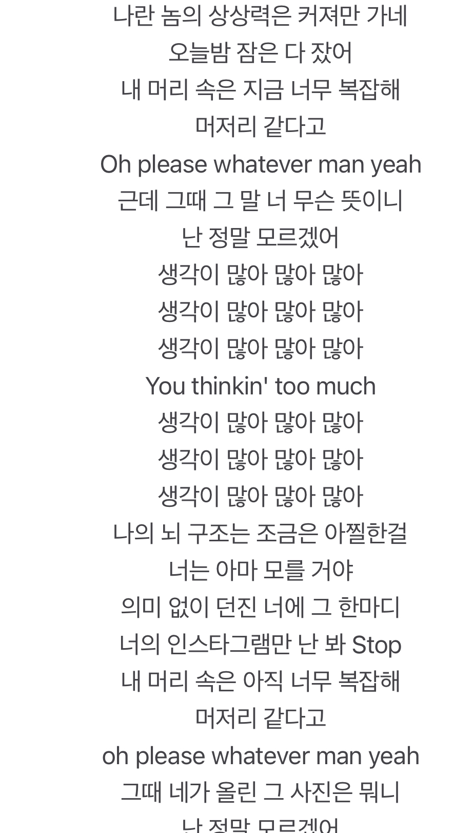 <생각이 많아>이 노래의 가사에는 ‘오늘 밤 잠을 다 잤다’, ‘내 머릿속은 너무 복잡해’ 등 마이큐형의 불안하고 초조한 당시 마음을 대변한다. 이처럼 이 노래를 우연히 들으며 요즘 내가 잠이 안 오는 이유를 돌이켜 생각해 본다. 생각이 많아서였다. 정확히는 망상이다.