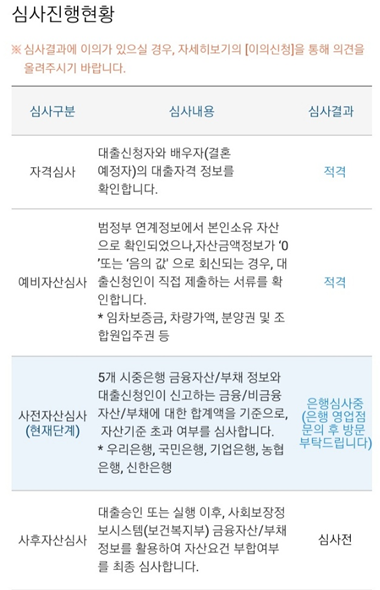 가게 될 집주소를 입력하고 인적사항, 대출신청금액 등을 입력하면 단계에 맞게 심사를 한다. 은행에서 모두 할 수 있지만 개인적으로 들어가서 신청을 하면 하루만에 심사가 다 끝나고 카카오톡으로 알림이 오니, 직접하는 게 훨씬 빠르고 좋다. 은행가기 전 미리 신청해도 되고, 나처럼 은행에 서류를 다 제출하고 신청해도 된다.