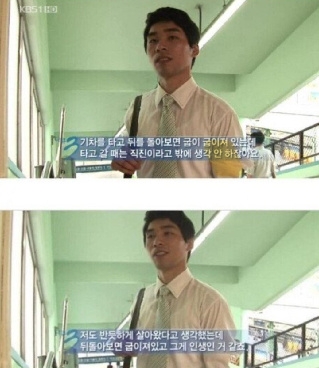 다큐 3일에 똑바른 길이라고 생각하며 달려왔는데 뒤를 돌아보니 굽어져 있었다고, 인생이 기찻길 같다고 말한 이 사람은 현인이다. 분명 무슨 일을 하든 바라는 바를 이뤘을 것이다.