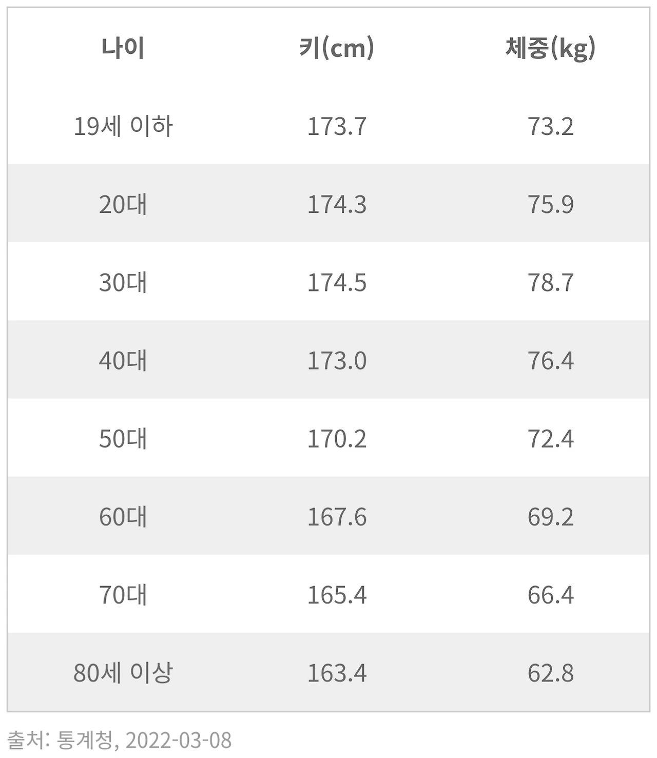 이 글을 쓰며 대한민국 남녀 평균 키에 한번 찾아봤다.