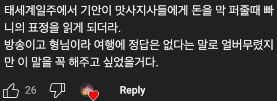 이 댓글을 보자. 여행유튜버 빠니보틀은 오지에 여행을 가면 구걸하는 사람들에게 단 1달러도 주지 않는다.한 명한테 주기 시작하면 그들의 삶을 바꿀 수 있는 돈이니, 모두가 본연의 일을 집어치우고 관광업에만 종사하게 될 것이기 때문이다. 그러면 관광지 본래의 모습을 잃어버리고 관광객은 줄어들고 그 지역은 악순환에 빠진다. 지금의 쿠바처럼.
