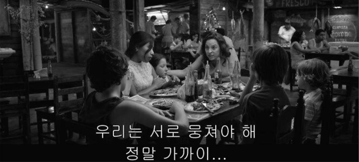 마지막 함께 떠난 휴가날, 거센 파도에서 아이들을 구하고 본인은 아이를 낳고 싶지 않았다고 클레오는 마침내 울부짖는다. 힘과 권력이 세상을 지배할 때 아무도 주목하지 않는 두 여자의 초인적인 삶의 책임감은 대중들에게 큰 깨달음을 안긴다. 감독은 이렇게 전혀 예상치도 못한 시선에서 예상치도 못한 원석을 뽑아내 스크린을 통해 대중을 감동시킨다. 그 원석이란 뭘까. 삶에서 권력과 스포트라이트, 명예와 부는 부수적인 것이며, 가장 작고 당연한 것이 갖추어질 때에 삶의 안정과 평안이 찾아온다는 메시지. 감독은 단순히 소중한 기억을 꺼내어보고 본인의 어린시절 가정부 리보를 추억하려는 의도를 넘어 그녀를 향한 깊은 경외심을 이 영화를 통해 나타내려 하지 않았나하는 생각이 든다. 영화를 보면서 스페인어를 배우길 참 잘했다는 생각이 든 적은 가히 처음일정도로 클레오의 어투, 아이들의 낭만, 이혼당한 아내의 고뇌, 권력에 눈이 멀어 약한 걸 경시하는 남자들의 비겁함이 고스란히 스크린을 통해 전해져서 감동의 깊이와 울림이 더 크다.