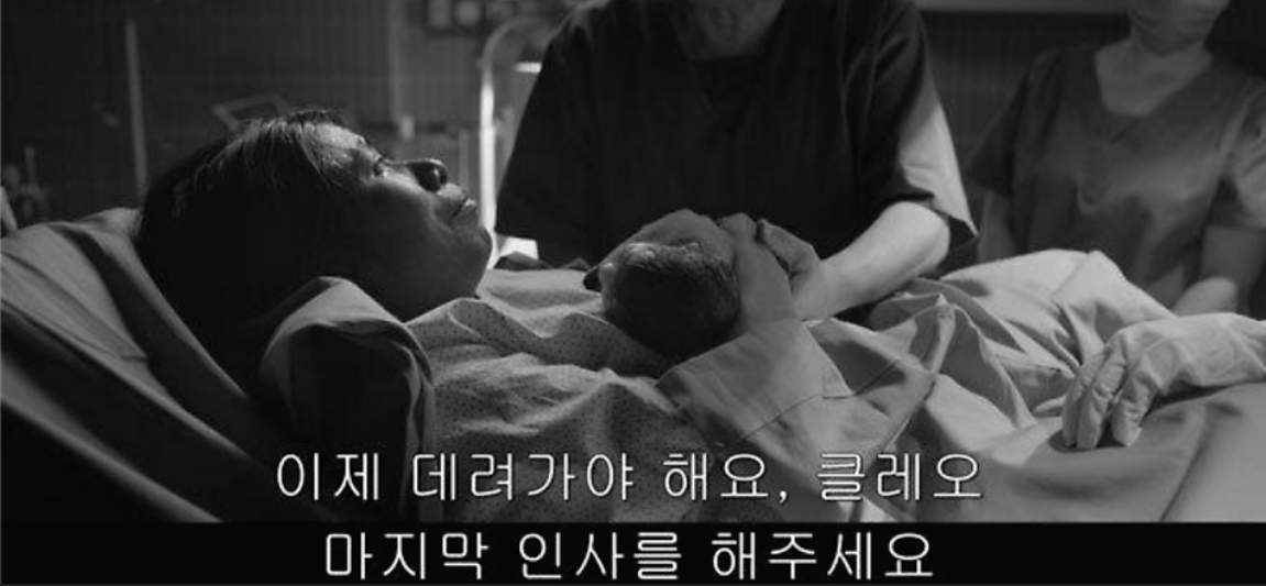 없는 사람은 빈곤을 넘어 인간으로서의 존엄, 가치가 훼손될 정도로 삶이 송두리째 무너지는 경험을 한다. 이 영화에서도 개똥이 나오는데, 개똥은 모두가 아무렇지 않게 넘기나 딱 그 집안의 가장 한 사람만 싫증을 내고 짜증을 낸다. 자본주의는 마치 영화의 개똥같은 그런 것이다. 돈을 가진 사람에겐 돈만 보이고, 돈에 가려진 더 값진 걸 찾는 사람에겐 또 다른 큰 세상이 열린다. 감독은 각자의 삶에서 가장 중요한 가족 그리고 본인을 진정으로 사랑해 주고 보듬어주는 최소한의 연대가 지켜진 상태에서 책임감이 부여될 때 인간으로서 가장 가치 있는 삶을 영위하는 것이 아닐까하는 메시지로 대중들에게 공감을 구하는듯 하다. 뱃속의 아기는 죽은 채 태어나고, 직업도 가정부에다가, 사회적 약자인 여자로 아무것도 가진 게 없는 클레오가 수영도 못하면서 파도를 헤치고 같이 사는 아내의 아이들을 구하러 가는 장면은 돈과 권력에 홀린 듯 살아가는 현대인에게 일침을 가한다. 그게 아니라, 그냥 내 삶 자체를 책임감 갖고 살아가는 자체가 올바른 삶이라고. 그게 곧 평정이라고. 클레오에게 이런 시련, 파도의 거센 파고가 없었더라면 그녀는 평생 삶의 가치를 들여다보지 못한 채 하루살이 인생을 살았을지 모른다. 아니면 평범하게 출산을 해, 누군가의 밑에서 어찌저찌 아이를 키워내며 부족하게 살아갔을지 모른다. 상처와 흉터가 남긴 연대, 그리고 사랑이 반복적인 인간의 삶 속에서 한 인간이 마주하는 평정심의 거의 최선이다. 내가 경험한 배경에, 언어에서 역사적 사건을 조명하고 인간의 삶에 대해 사유할 수 있는 이 영화는 내겐 가히 최고라 할 만하다.