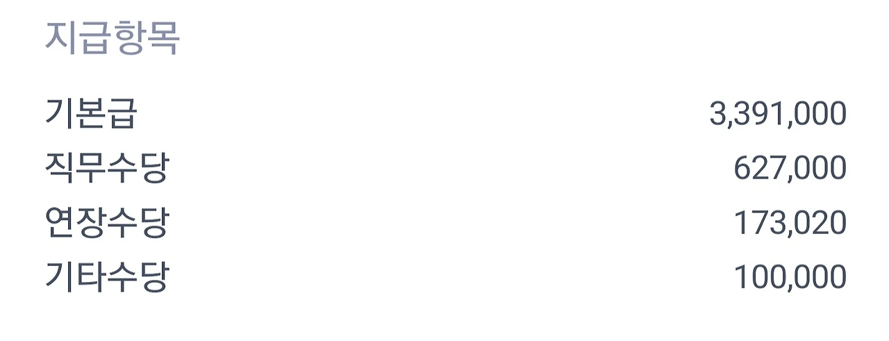 2년 다닌 사원의 월급이다. 세금은 모두 뺐다. 누구는 많다고 생각할 수 있고 누군가는 대기업인데 생각보다적다고 생각할 수 있다.