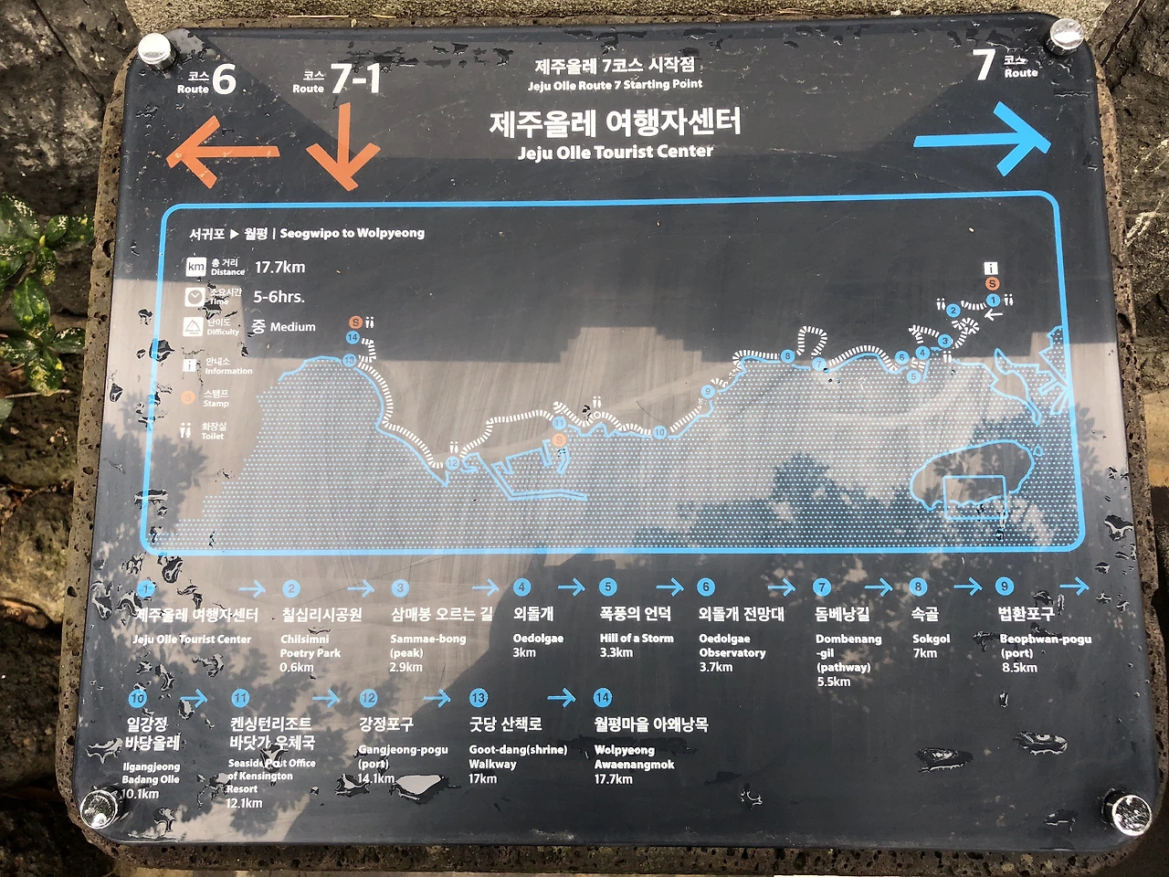 7코스 : 서귀포 제주올레 여행자센터 - 월평 아왜낭목, 17.5km (5-6시간 소요)