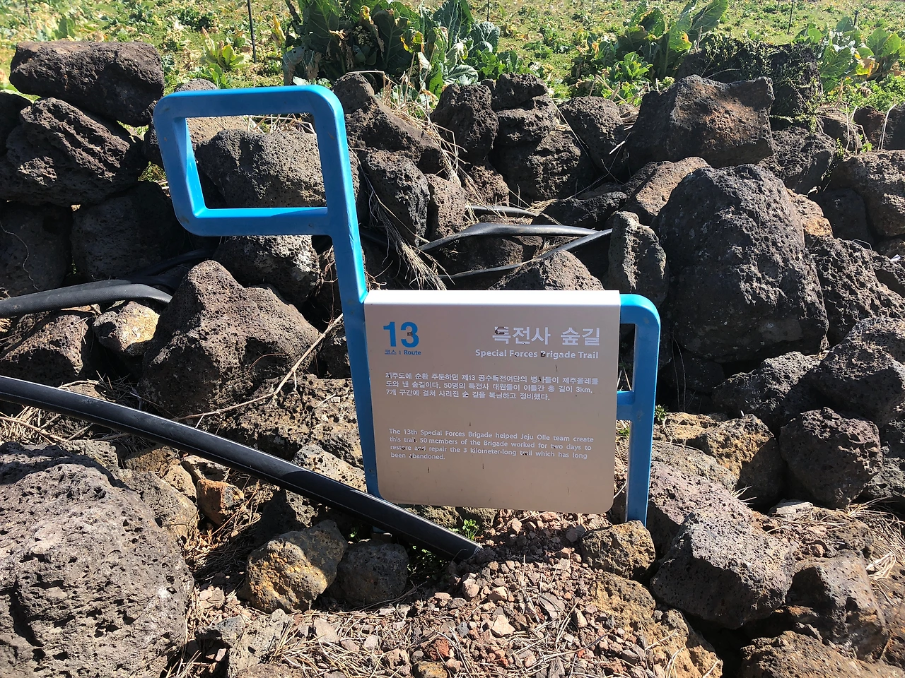 13코스에는 특전사 숲길, 고사리 숲길이 있고 의자공원이 있는 아홉굿마을, 저지오름이 있는 코스다. 13코스의 출발점인 용수포구는 멋진 석양을 볼 수 있는 곳이기도 한다.