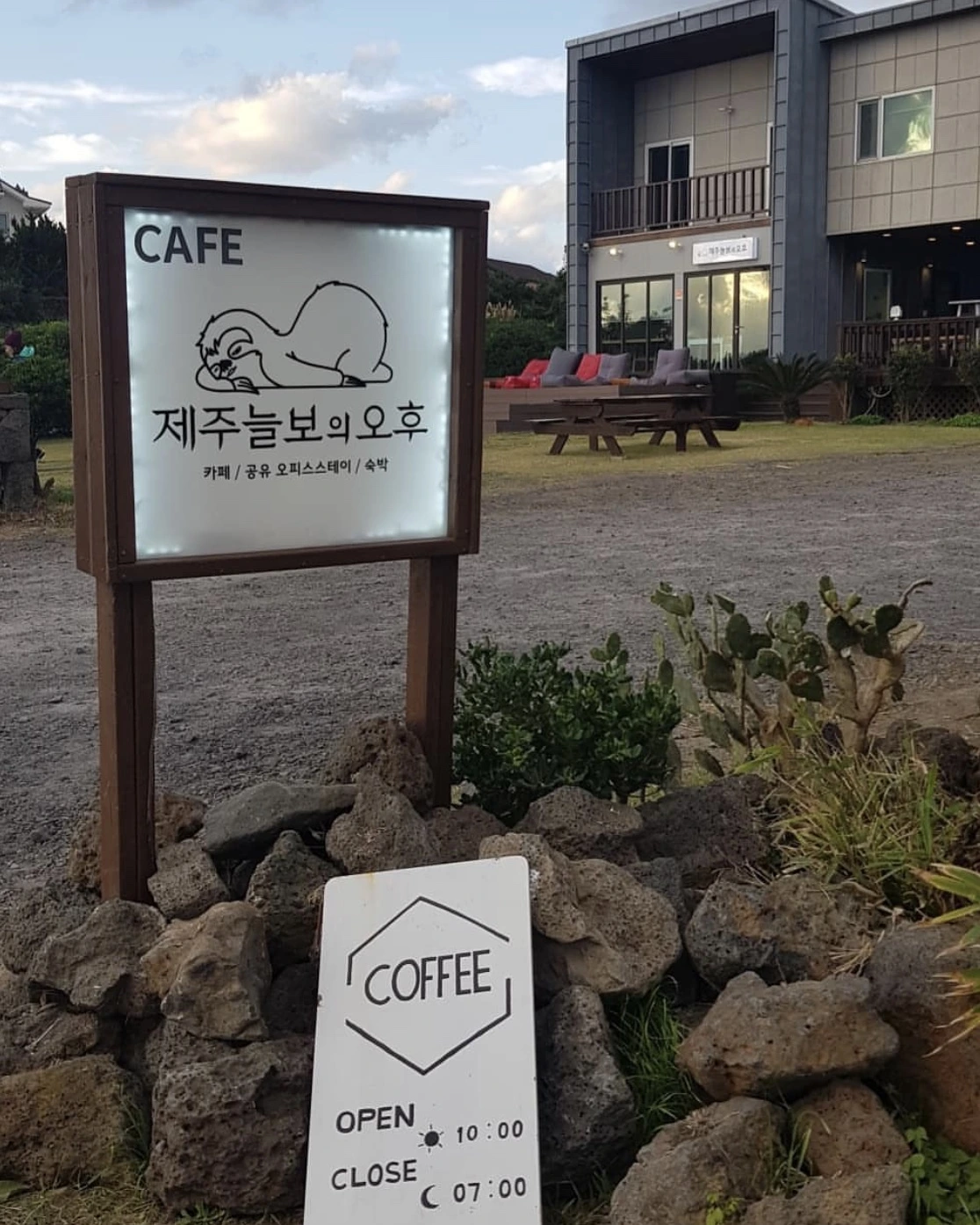 13코스의 시작점인 용수포구에는 멋진 석양을 볼 수 있는 펜션이 있다. '제주늘보의 오후'라는 멋진 이름을 가진 곳이다. 제주의 바다를 온전히 바라보며 오후의 시간을 보낼 수 있는 카페도 함께 운영하고 있다. 최근 주인도 바뀌고, 펜션 전체를 새롭게 단장했다. 펜션의 시설, 소품 하나하나에 정성을 담은 것이 느껴지는 그런 곳이기도 하다. 바로 근처에는 식당이 없지만, 모슬포항이나 협재해수욕장이 적당한 거리에 있다.