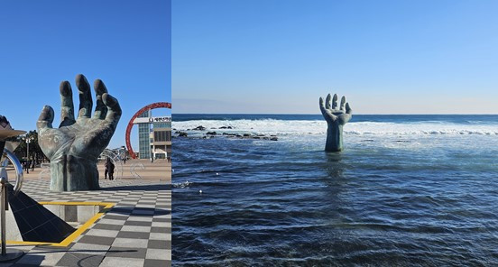 이 조형물은 1999년 말, 새로운 천 년을 맞아 인류의 화합과 공존을 염원하는 마음으로 만들어졌다고 한다. 바다의 손은 생동감이 넘쳤고, 육지의 손은 포용과 안정감을 품고 있었다. 과거를 딛고, 더 나은 미래를 향해 나아가는 염원을 담은 이 두 손은, 나에게도 새로운 다짐을 품게 했다.