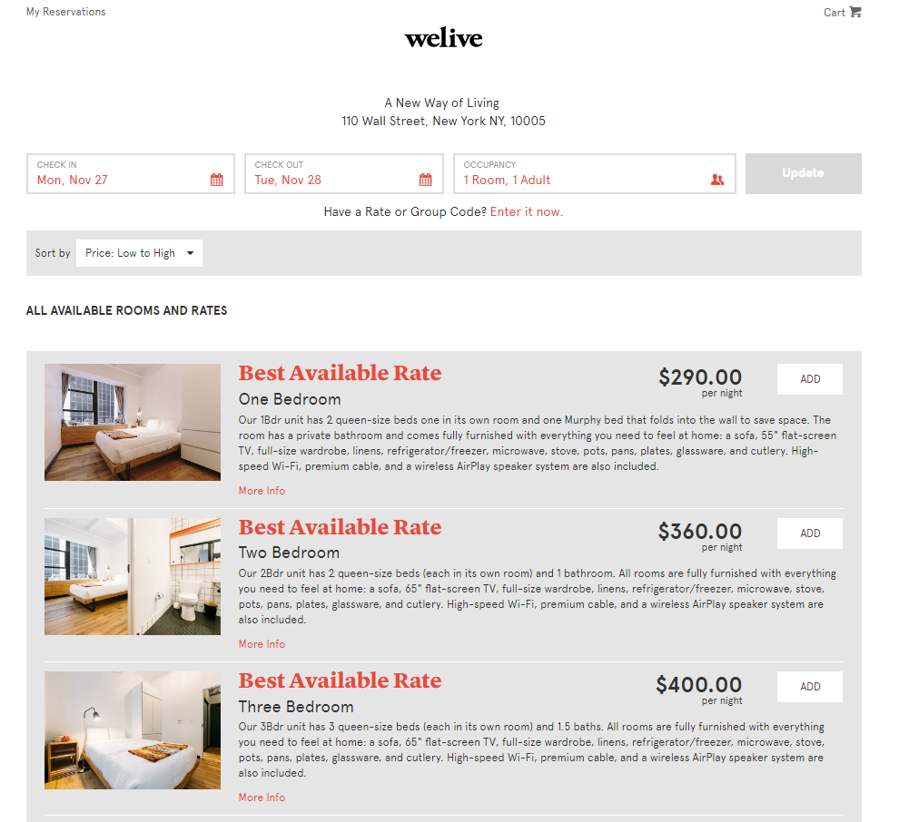 여러 사람들과 기획 회의를 하던 중 솔깃한 정보를 들었다. 코워킹 스페이스 위워크가 본점이 있는 월스트리트에서 셰어하우스(코리빙) 서비스인 '위리브(WeLive)'를 새로 시작했는데, 단기 숙박도 받고 있다는 것.