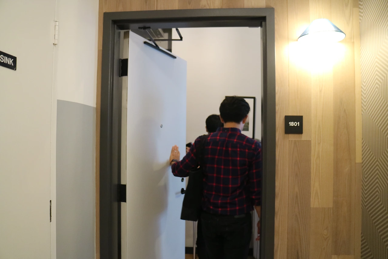 위워크와 위리브가 같은 건물에 있지만, 위리브 카드키로는 위워크 건물에 들어갈 수 없다. 또 배정된 층이 아닌 다른 층 탐방도 갈 수 없다. 우리의 원베드룸 유닛이 위치한 층은 18층. 옆집에는 장기 거주자(로 추정되는) 분들이 살고 있었다.