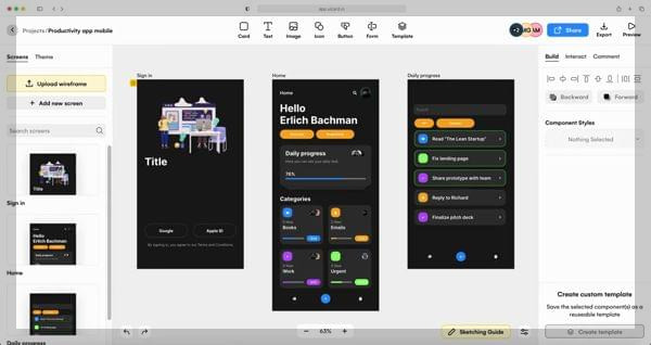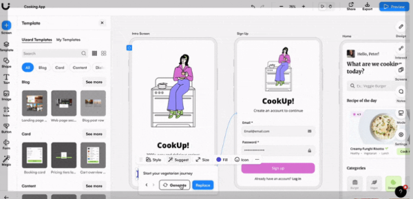 Uizard.ai의 또 다른 돋보이는 특징은 생성 인공지능(AI)을 이용해 프로토타입을 신속하게 제작할 수 있다는 점입니다. 이전에도 다양한 프로토타이핑 도구가 있었지만, 생성 AI를 활용함으로써 더 빠르고 효과적으로 고품질의 디자인 컨셉을 실현할 수 있게 되었습니다. 이는 디자인 프로세스에 큰 변화를 가져온 것으로, 사용자들은 몇 분 내에 프로토타입을 제작하고 실제로 작동하는 형태로 만들어 평가할 수 있습니다.
