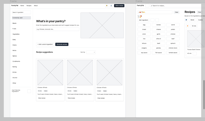텍스트 프롬프트: 사용자가 식료품 저장실에 가지고 있는 재료를 기반으로 레시피를 생성하는 플랫폼입니다. 사용자가 이미 가지고 있는 모든 재료를 입력하면 앱에서 가능한 레시피를 제안합니다.