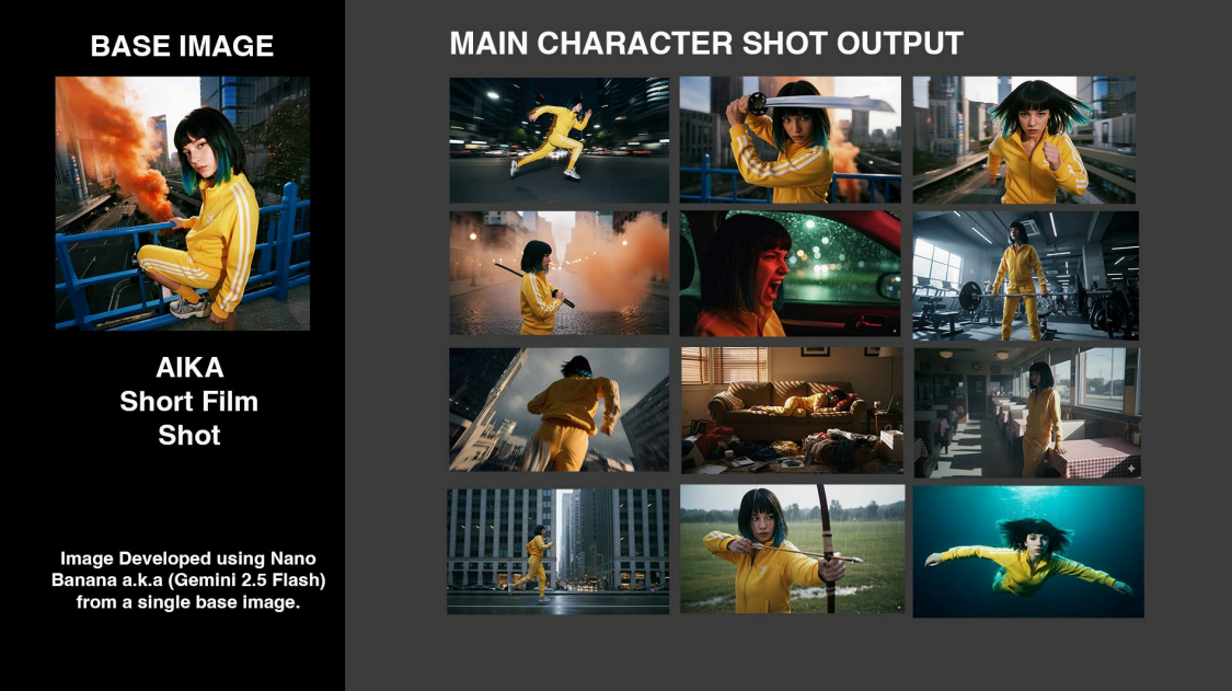 '일관된 캐릭터 생성(Consistent Character Generation)'은 나노 바나나의 핵심 기능 중 하나로, 생성형 AI의 고질적인 문제였던 인물 동일성 유지의 어려움을 해결한다. 기존 모델들은 동일한 인물을 다른 포즈나 표정으로 생성하려 할 때마다 미세하게 다른 얼굴을 만들어냈지만, 이 기능은 참조 이미지를 통해 캐릭터의 고유한 얼굴 특징, 체형 등을 '고정'시킨다. 디자이너는 이 기준 이미지를 바탕으로 "웃는 모습", "우주복을 입고 있는 모습", "슬픈 표정"과 같은 프롬프트를 입력하여 동일한 캐릭터가 다양한 상황과 감정을 연기하는 이미지를 무한히 생성할 수 있다. 이는 브랜드 마스코트, 동화책 삽화, 게임 캐릭터 디자인, 웹툰 제작 등 일관된 인물의 등장이 필수적인 모든 스토리텔링 기반 프로젝트에 혁신을 가져온다.