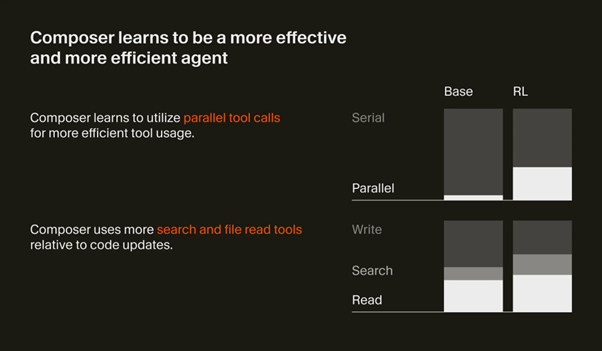 Cursor 2.0의 심장부에는 자체 개발한 AI 모델 ‘Composer’가 자리 잡고 있다. Composer는 범용 대규모 언어 모델(LLM)이 아니라, 상호작용이 필수적인 소프트웨어 개발 환경의 고유한 문제들을 해결하기 위해 고도로 전문화된 ‘에이전트 코딩 모델(agentic coding model)’이다. 이 모델의 설계는 속도와 도구 활용 능력에 최우선 순위를 두어, 완전히 새로운 반복적 개발 워크플로우를 가능하게 하는 엔진 역할을 수행한다.