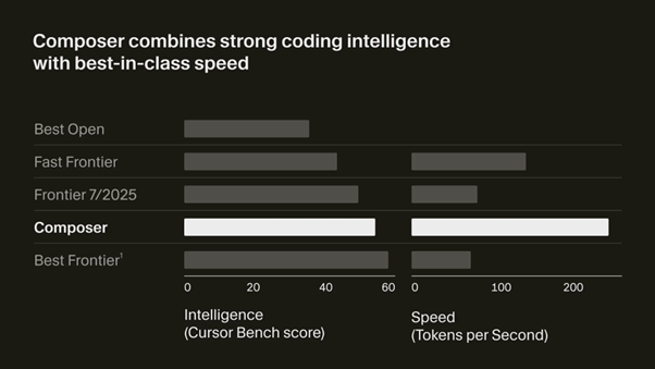 Composer가 가져온 가장 파괴적인 혁신은 단연 ‘속도’다. 유사한 지능을 가진 프론티어 모델 대비 최대 4배 빠른 추론 속도(초당 200 토큰)를 달성하고, 대부분의 대화형 작업을 30초 이내에 완료함으로써 사용자 경험을 근본적으로 바꾸어 놓았다. 이 속도는 단순히 편리함을 넘어, 개발 패러다임 자체를 전환시키는 촉매제 역할을 한다.