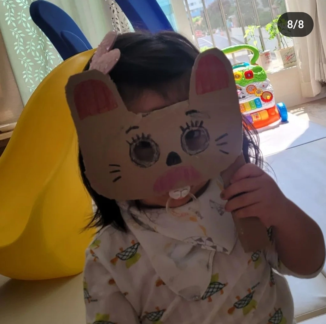 그렇게 꿀복이와 나와의 단 둘만의 일주일 '집콕'이 시작됐다. 친정 엄마는 나에게 꿀복이를 돌보는 동안 늘 마스크를 쓰라고 했지만 집 안에서 마스크를 쓰고 일주일을 아이와 시간을 보내는 것은 불가능에 가깝다고 생각하고 처음부터 마스크를 벗어버리고 생활했다.
