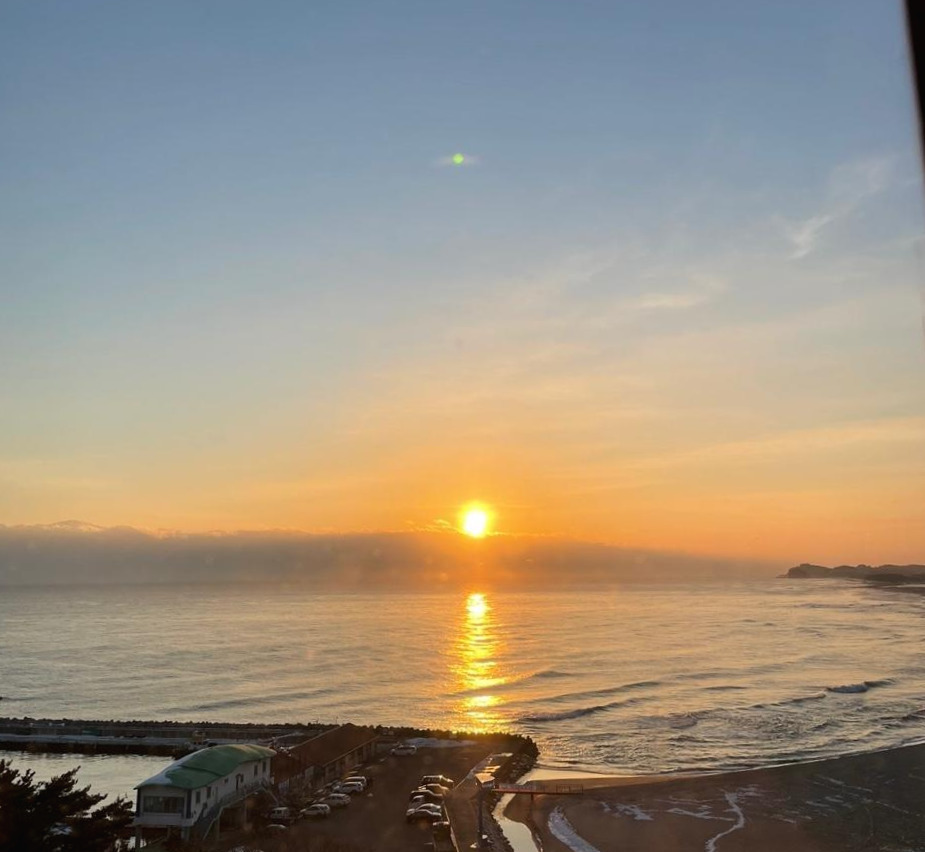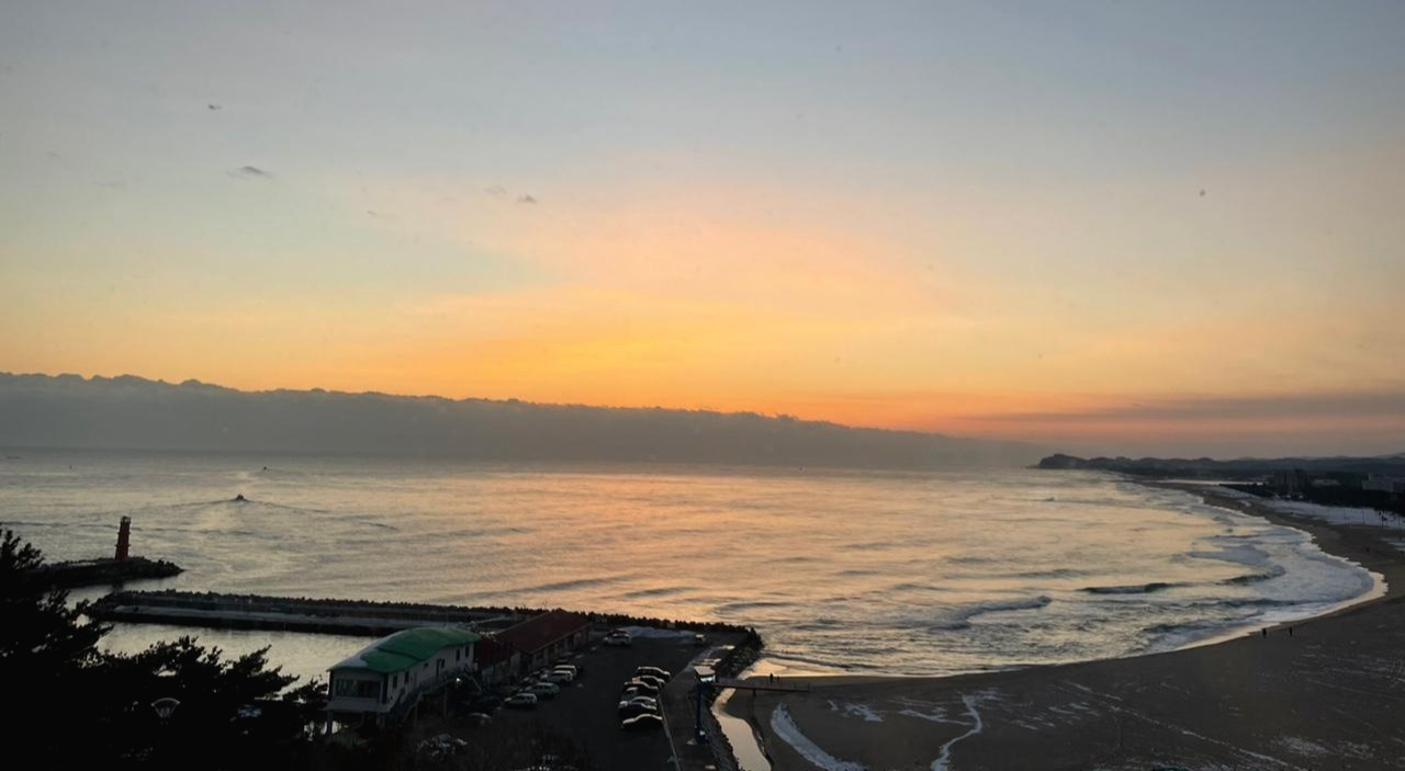 오전 7시. 일출을 보기 위해 일찍이 기상을 했다. 여행 오면 눈이 잘만 떠진다던데. 예상보다 개운하진 않았던 아침을 맞이했다. 그럼에도 커튼을 펼치고 창문 너머로 보였던 일렁이는 바다가 나를 가만가만 잠으로부터 벗어나게 했다.
