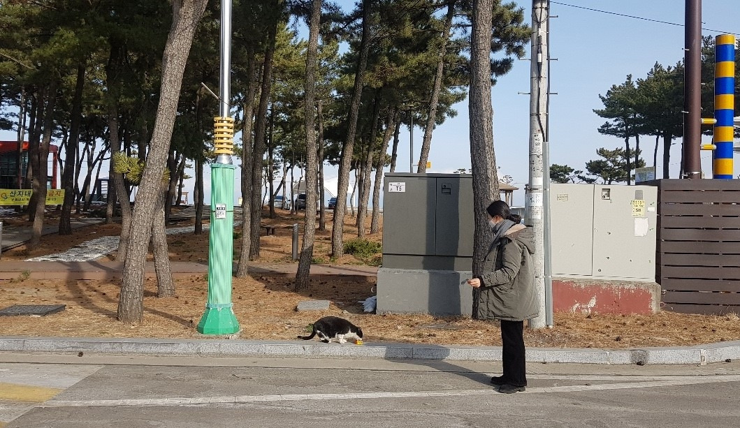 어디선가 고양이 우는 소리가 들렸다. 폐건물 입구 한쪽에서 고양이 한 마리가 모습을 보였다. 나를 보고 계속 야옹거렸다. 그리곤 내 뒤를 졸졸 따라왔다. 사람이 그리웠나 싶기도 하고 배가 고파 보이기도 했다. 나는 잠시 동안 고양이와 놀아주었다. 애교가 많았다. 그리고 잠시 뒤, 애교를 다 부렸는지 쿨하게 제 갈 길을 갔다. (^^)