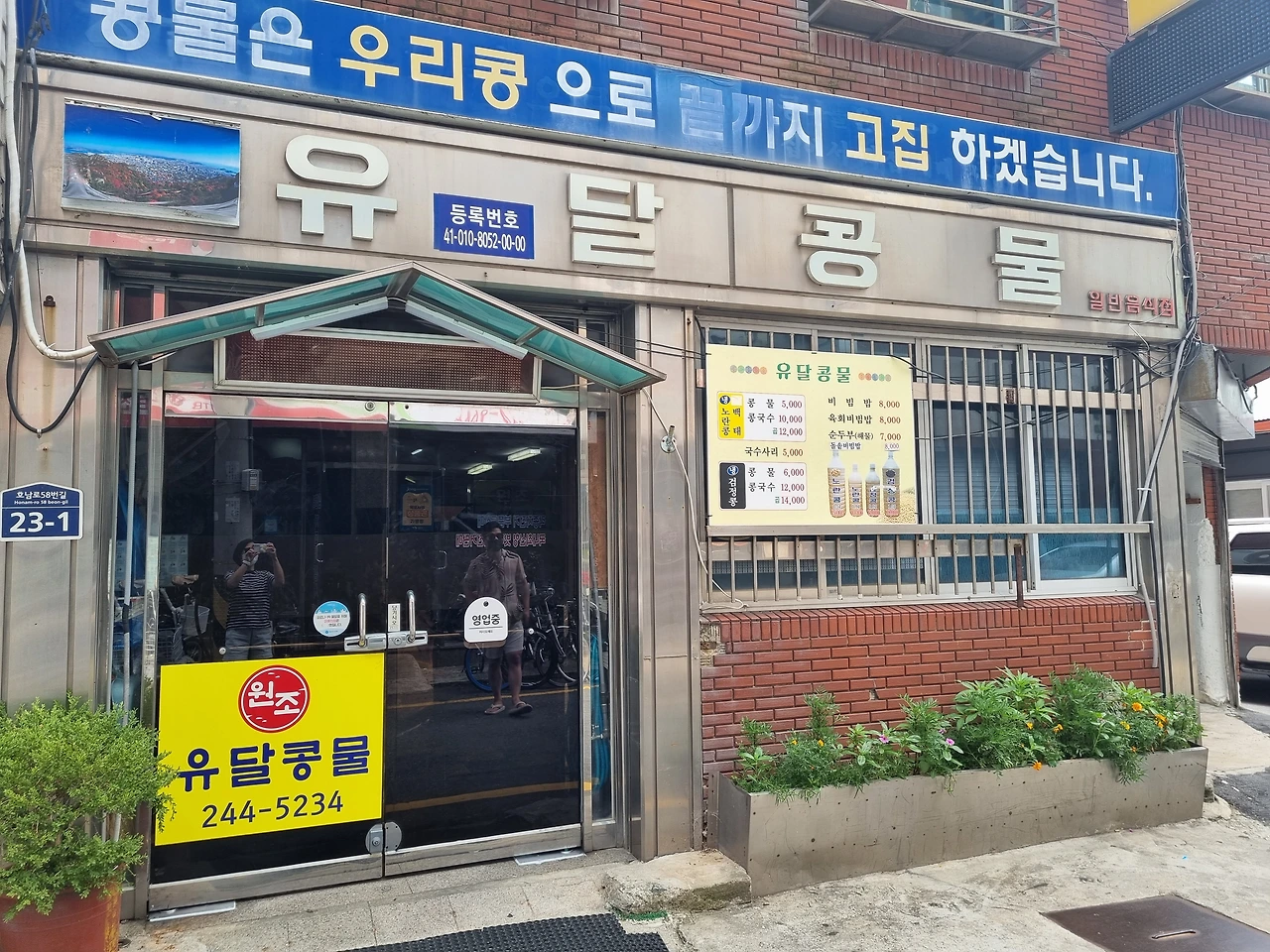 첫 도착지를 '유달콩물'로 정하고, 4시간여를 달려 10시반쯤 목포에 도착했다. 유달콩물에서 아점으로 콩국수와 육회비빔밥을 먹었다. 여름이면 콩국수를 빠지지 않고 챙겨먹는데, 유달콩물은 목포의 오래된 콩국수 가게(Since 1975)라고 해서 첫 식사로 정했다. 오래된 가게에서 풍겨오는 레트로 감성에서 이미 여기는 맛집이라는 편견(?)을 갖게하는 집이다. 편견을 걷어내고 평가하자면 적당히 맛있었다. 여행자 입장에서 너무 신기했던것은 테이블마다 있었던 큰 설탕통이었다. 콩국수에 설탕이라니! 이런 낯선 풍경 너무 좋다! (나는 개인적으로 소금파다)