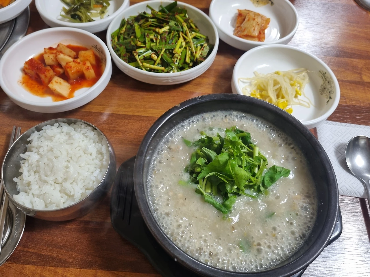 슬슬 배가 고파지기 시작해서 시화골목에서 가까운 '조선쫄복탕'으로 이른 저녁을 먹으러 갔다. 쫄복이 어떻게 생겼는지는 모르지만, 요 녀석 참 맛있었다. 쫄복살이 거의 보이지 않을 정도로 팔팔 끓여 액기스와도 같은 국물에 미나리, 부추무침을 넣고 한숟갈 먹었는데, 감탄이 절로 나는 맛이었다. 처음먹어 보는 맛과 식감이라 생소했는데, 왜 또 맛은 좋고 난리인지, 너무 더운데 왜 또 뜨끈한 국물은 계속 땡기고 난리인지? 쫄복탕으로 힘을 잔뜩 얻고 케이블카를 타러 갔다.