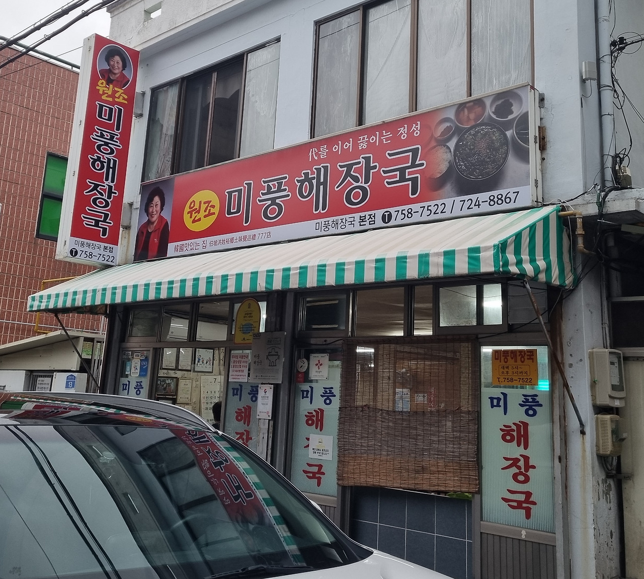 원래는 '대춘해장국'을 가려고 했는데, 가는 길에 우연히 '미풍해장국'를 발견하고, 간판에 쓰여있는 "원조"라는 단어와 창업주의 사진에 이끌려 가게 안으로 들어갔다. 결과는 대만족이었다. 피곤함이 얼큰한 해장국 한 그릇에 날아가버렸다.