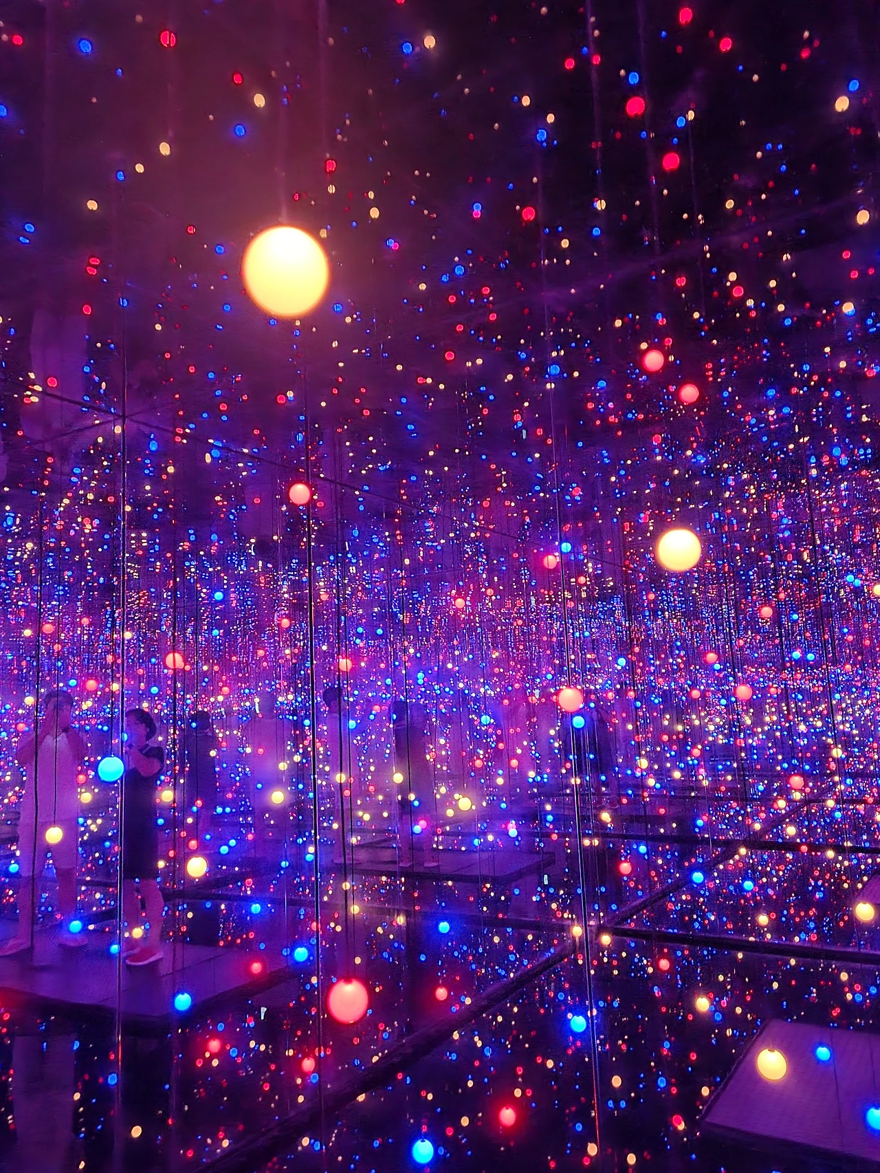 본태박물관에는 피카소, 달리, 백남준과 같은 유명 작가들의 작품들도 전시되어 있다. 박물관에서 제일 인상 깊은 작품은 '쿠사마 야요이'의 '무한 거울방-영혼의 반짝임'이라는 작품이었다. 이 작품은 관람객이 직접 체험할 수 있었는데, 작품(무한 거울방) 안에 직접 들어가 2분 정도 감상할 수 있다. 작품은 물과 전구, 거울로 구성되어 있는데 바닥에는 잔잔한 물이 있고, 사방에 거울이 있으며, 천장에는 다른 높낮이의 여러 전구들이 설치되어 있어 시시각각 전구 색깔이 변하면서 황홀한 느낌을 주었다. 너무 감동해서 3번이나 감상했다. (다행히 대기자가 별로 없었다.)