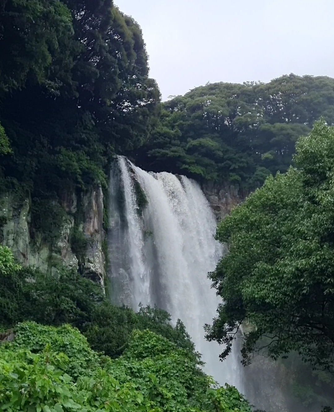 무수한 관광객들 사이에서 우리도 기념사진을 몇 장 찍고, 뒤로 살짝 물러나 폭포를 구경했다. 세차게 떨어지는 물줄기와 시원한 물소리에 비를 맞아도 기분이 좋았다. 여행 초반 비가 와서 아쉬웠던 마음에 서프라이즈 선물과도 같은 시간이었다. 과거에 제주도에서 여러 폭포들을 관광했지만, 엉또폭포가 단연 최고다. 비가 온 다음에만 볼 수 있다는 희귀성(?) 때문일까? 남편에게 우리 로또라도 사야 되는 거 아니냐며 기분 좋은 농담도 했다.