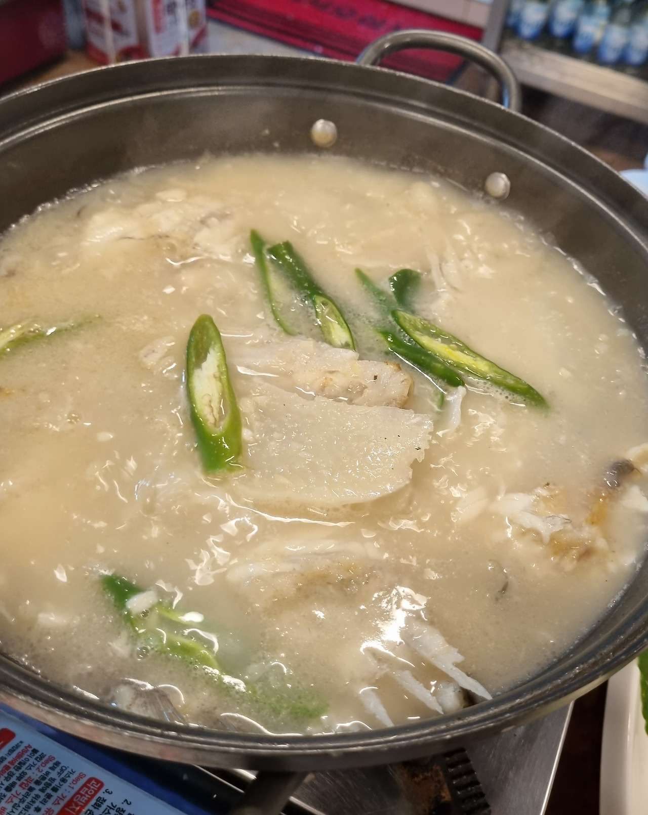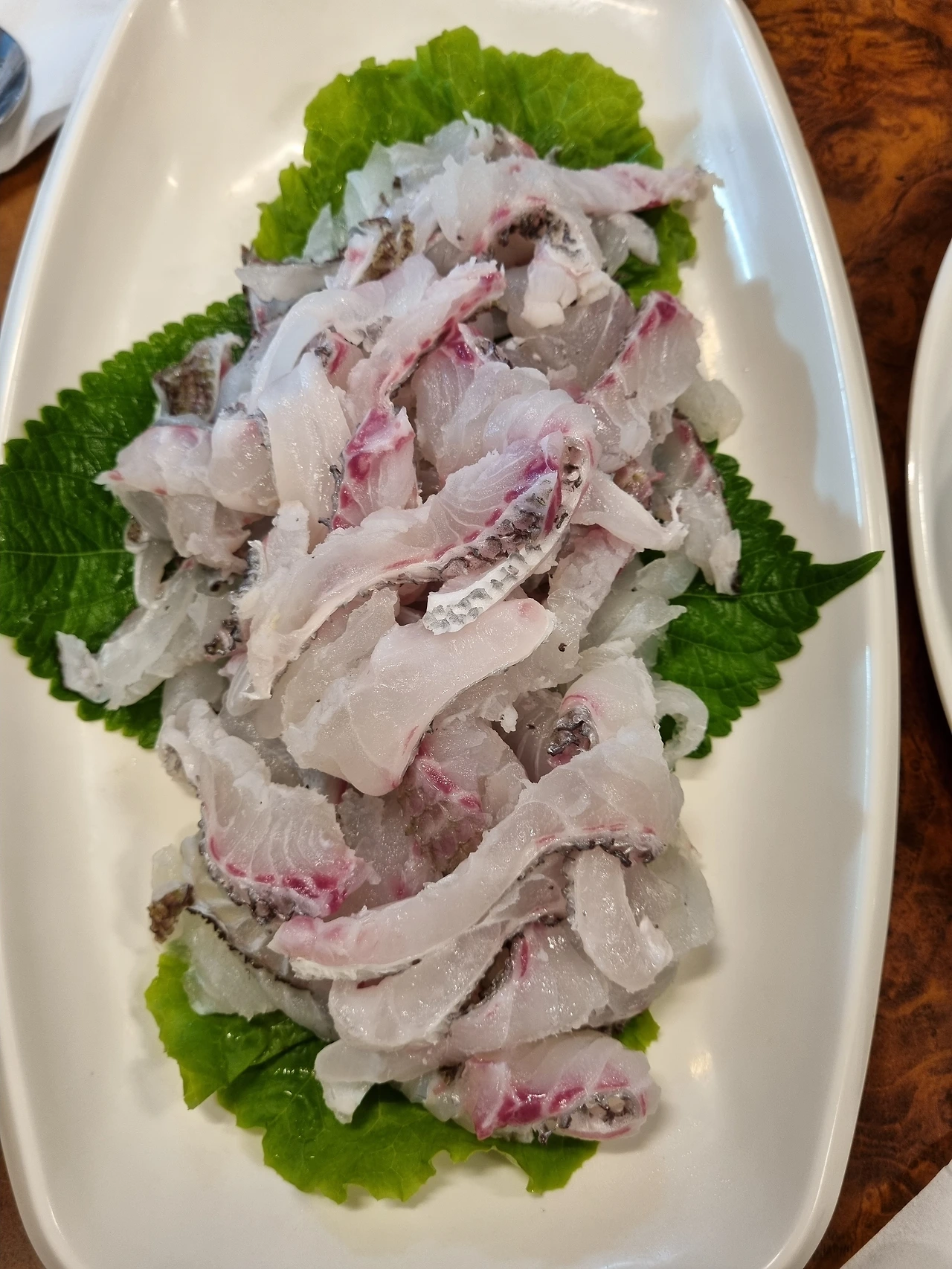 참돔회로 이미 유명한 집인 데다가 가게 규모도 크지 않아 대기가 있는 편이다. 우리는 저녁 6시쯤 방문해서 운 좋게 몇십 분 정도 기다렸다가 자리가 났다. 참돔회가 막 썰어서 나오는데, 그 모양새가 왠지 더 먹음직스러웠다. 두툼한 참돔회를 투박해서 더 맛있었던 쌈장에 찍어 쌈 싸 먹으면, 소주를 절로 부르는 맛이다. 이 집의 하이라이트는 바로 하얗게 끓여주시는 매운탕(지리?)인데, 국물이 너무 뽀얗고 진한 것이 이 메뉴만 따로 사 먹고 싶을 정도다. 이 귀한 것을 서비스로 내어주시다니 감사할 따름이었다. 맛있는 음식과 술, 정말 기분 좋은 저녁이었다.