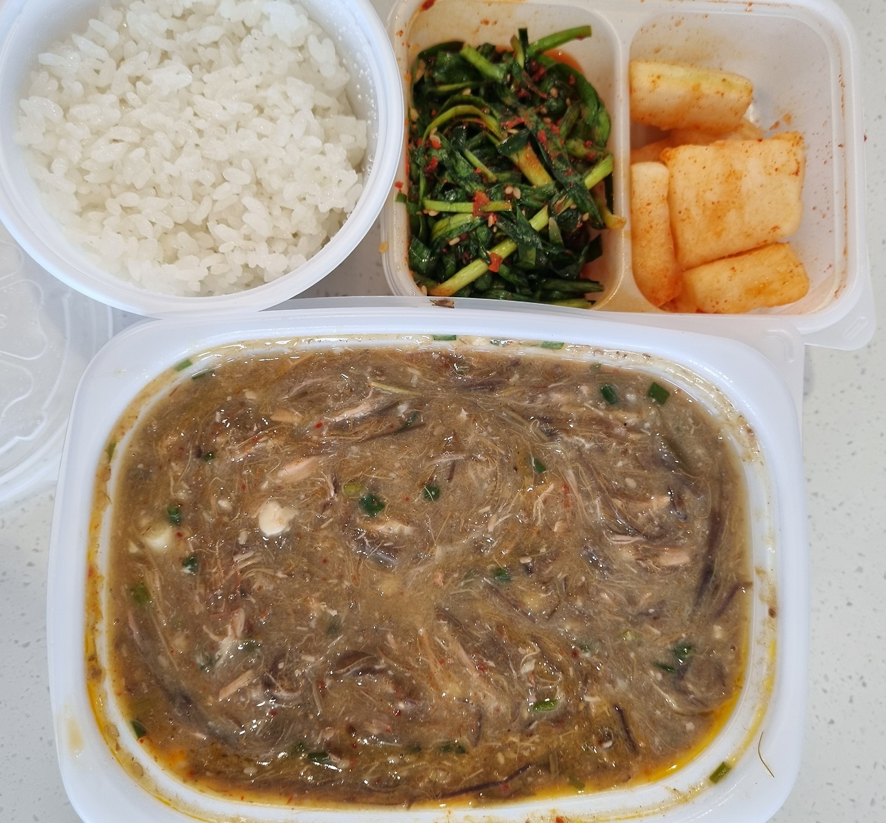 왠지 우진해장국을 안 먹고 가면 아쉬울 것 같아서 마지막 날 결국 고사리육개장 한 그릇을 포장했다. 포장은 대기 없이 바로 주문이 가능하다. 포장을 해서 목포 가는 배에서 살짝 데워서 먹었는데, 역시나 뚝배기에 팔팔 끓여져서 식당에서 바로 먹는 맛보다는 조금 덜했다.