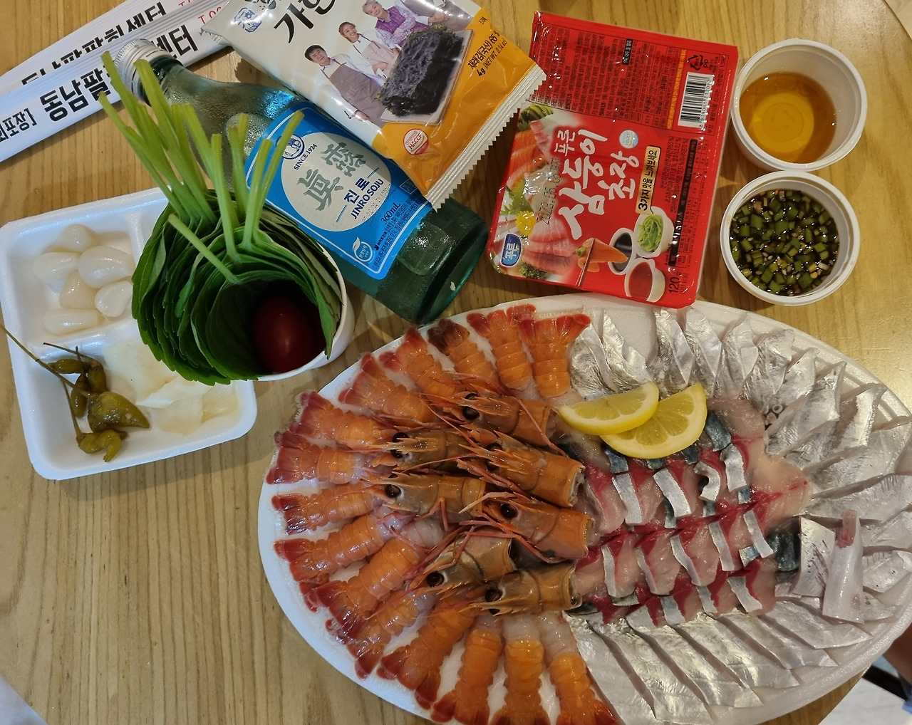 제주도에 가면 숙소에서 편하게 술을 먹고 싶을 때가 있는데, 그럴 때 추천드릴만한 회 포장 전문점이다. 세트 구성이 다양하게 되어 있어 먹고 싶은 구성으로 고르면 된다. 우리는 고등어와 갈치, 딱새우회 세트 구성을 골라서 포장했다. 주문하는 즉시 고등어를 잡아서 바로 회치는(?) 모습을 볼 수 있어서 믿음이 갔다. 숙소에서 신선한 회를 맛있게 먹을 수 있어서 좋았다.