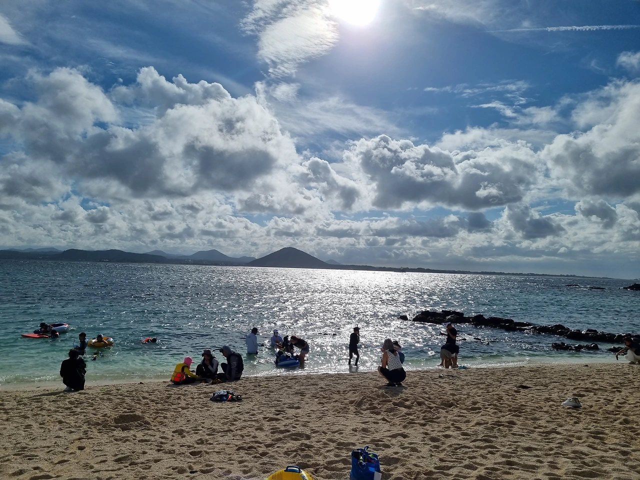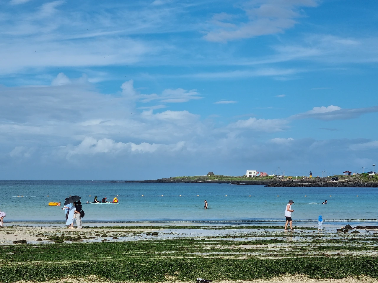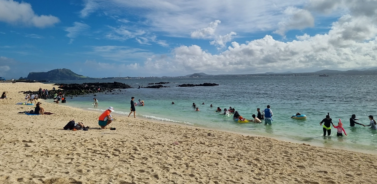 비양도를 나와 우도 '하고수동 해수욕장'으로 향했다. 제주도 여행 와서 처음으로 바다에 몸을 담갔다. 더운 날씨에 적당히 차가운 바닷물이 너무 시원했다. 주변을 둘러보니 온통 옥색의 바닷물과 행복해 보이는 사람들. 바닷물에 몸을 담그니 이제야 진짜 여름휴가 같았다. 한참을 바다 위에 둥둥 떠 있다가 밖으로 나왔다.