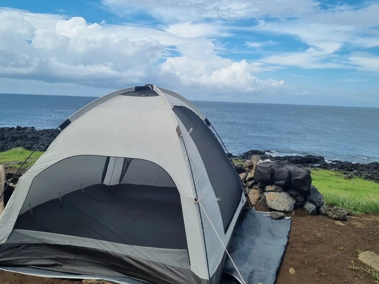 *텐트 피칭, 텐트 앞이 바다인 풍경