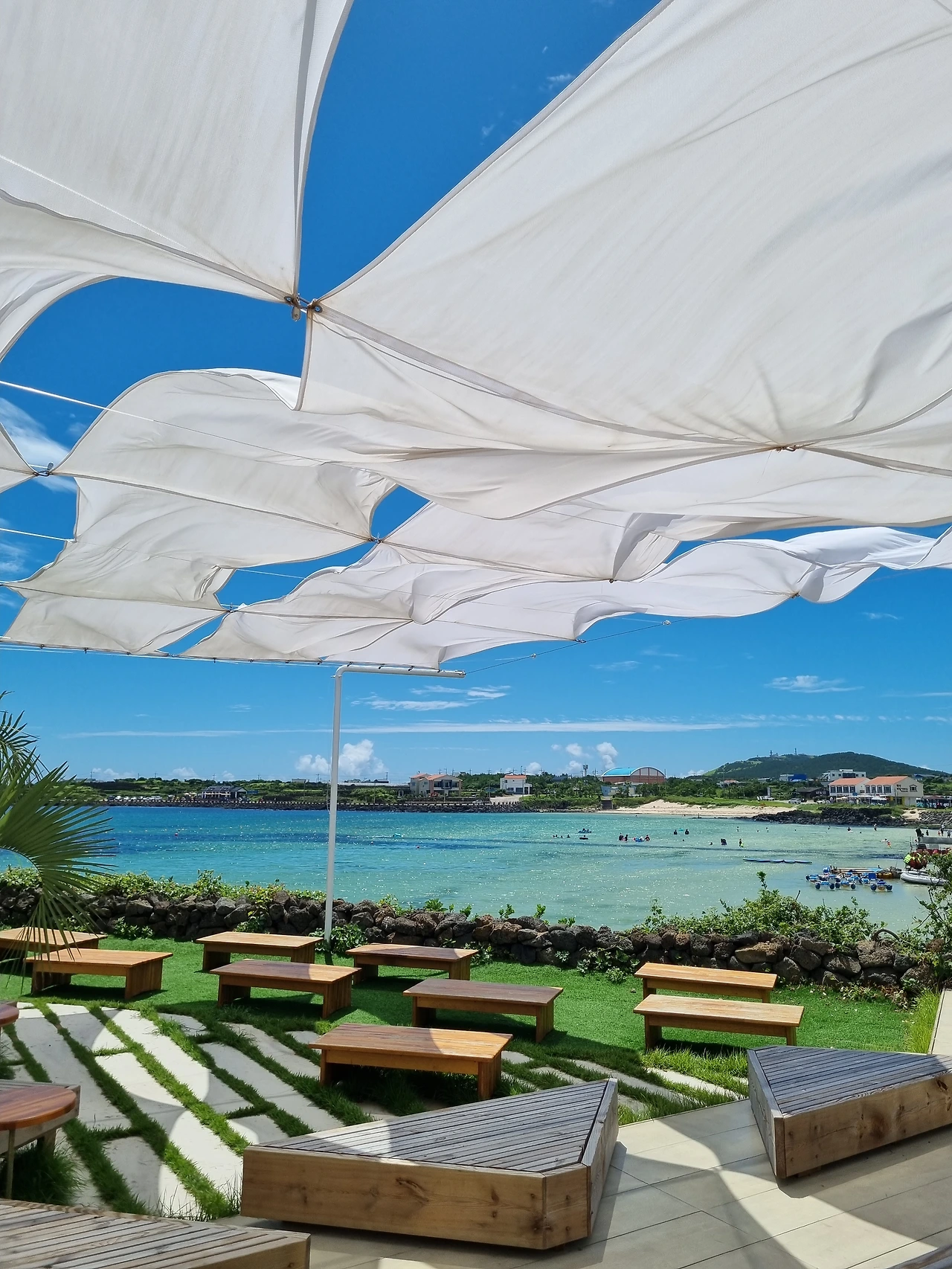 검멀레해변 근처에 보트를 타는 관광객들이 제법 많았다. 보트를 구경하다가 재밌을 것 같아서 우리도 탔다. 보트는 지역주민들이 운영하는 것 같았고, 현금(계좌이체)만 가능해서 아쉬웠다. (성인 1인 2만원) 그리고 보트 내 안정장치라고는 손잡이를 잡는 것뿐이었는데, 성인인 나는 괜찮았지만 아이들이 타기에는 다소 위험해 보였다. 나도 사실 조금 무서운 순간들이 있었다. 재밌고 스릴 넘치는 보트 투어였는데, 몇 가지 이유로 조금은 아쉬운 경험이었다. 손잡이를 너무 꼭 잡고 탄 바람에 다음날 팔이 욱신거렸다.