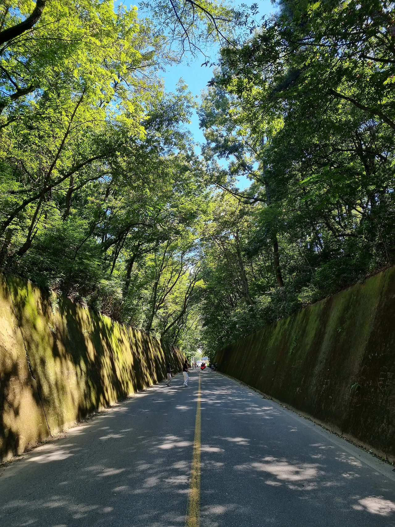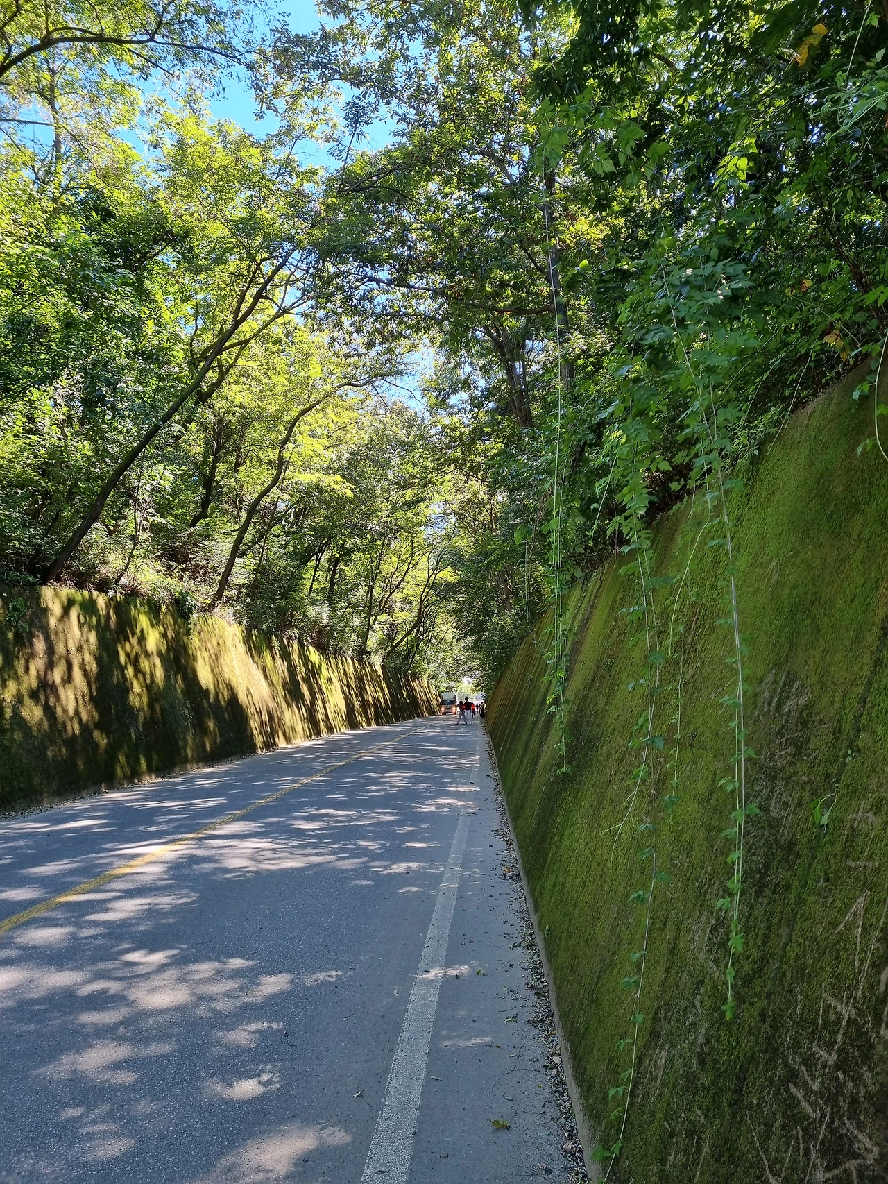 터널이라고 하기에는 위가 뚫려있지만, 이끼터널이라는 이름은 정말 잘 지은 것 같다. 울창한 나무와 터널에 촘촘히 박혀있는 이끼들이 오묘한 분위기를 풍긴다. 실제 차가 다니는 도로지만 차가 오지 않는 틈을 타서 사진을 찍기 위한 사람들이 꽤 있었다. 터널 근처에 주차를 하고, 나도 인증샷을 몇 장 찍었다.