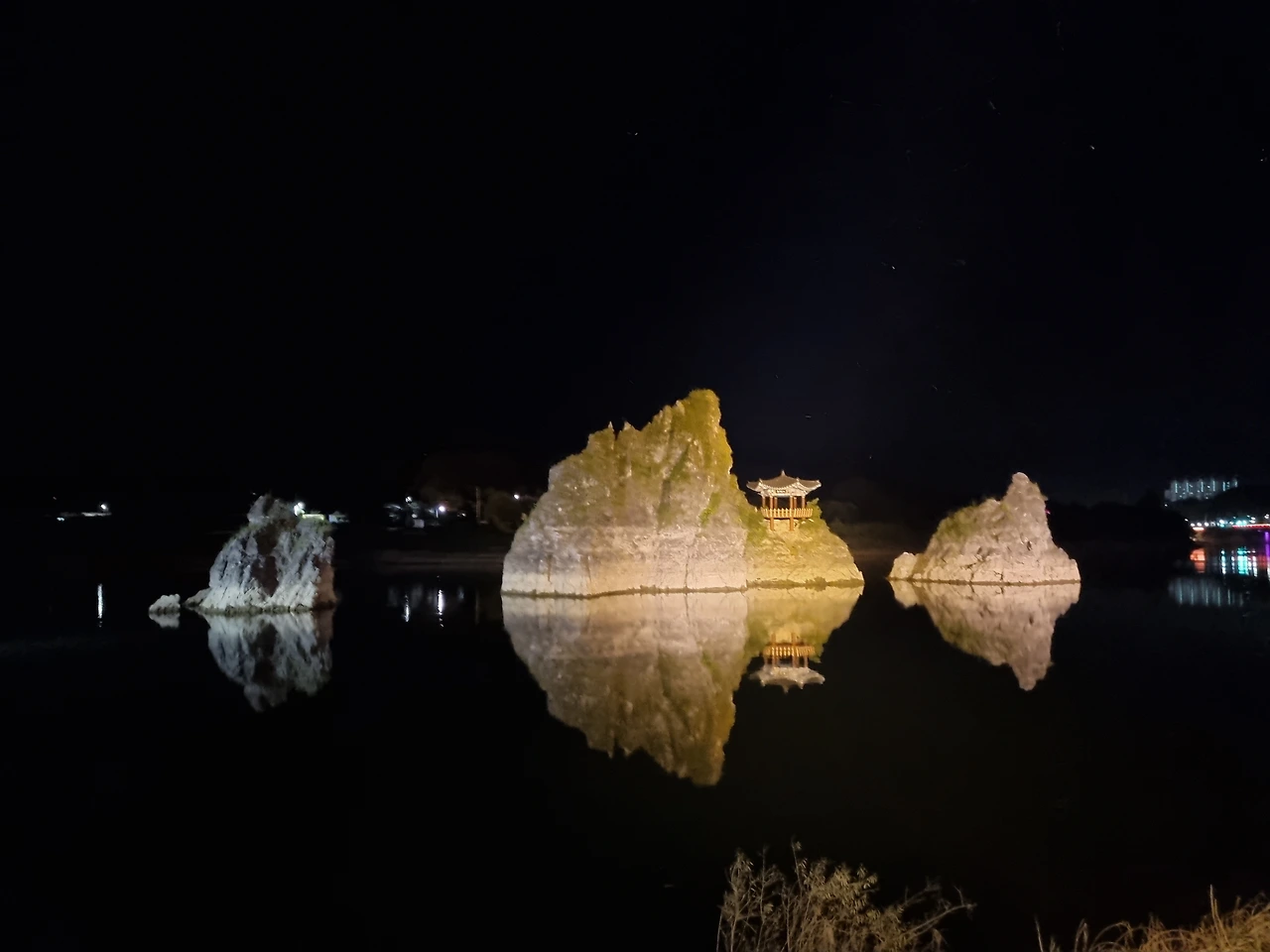 원래는 1박(차박)을 하고 가려고 했는데, 차박지에서 뜻하지 않게 벌레떼의 습격을 받아 급하게 철수하고 집으로 향했다. 집으로 가는 길에 마침 도담삼봉이 있어 잠깐 들렀다. 낮에는 어떤 모습일지 모르겠지만, 도담삼봉의 야경은 마치 그림 같았다. 물에 반영된 도담삼봉의 모습이 완벽한 데칼코마니였다.