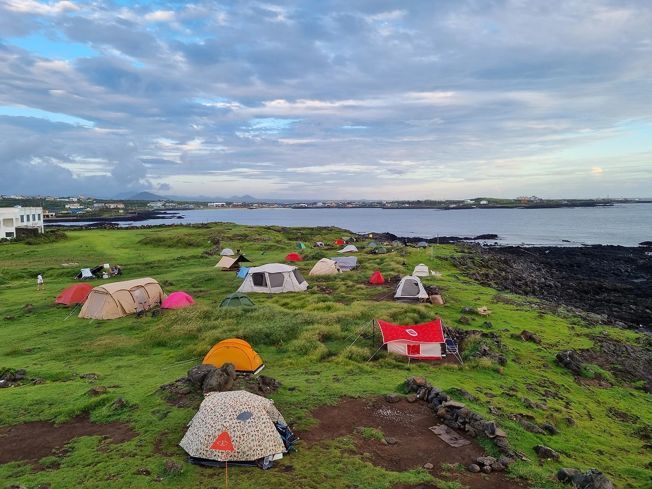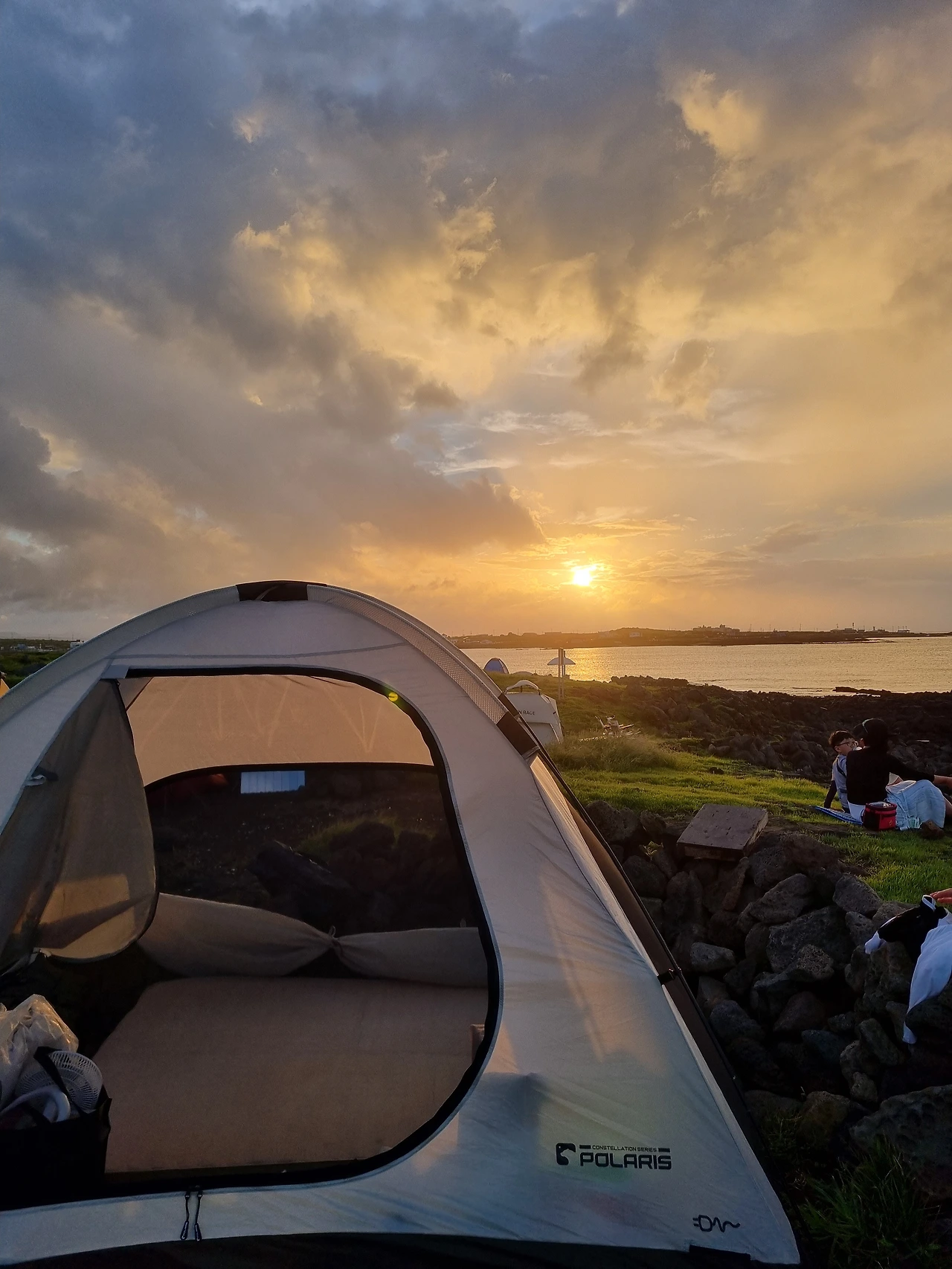 그동안 다녀온 캠핑장은 총 여덟 곳이다. 무주 수목원캠핑장, 이천 이포보캠핑장, 보성 율포솔밭해수욕장 캠핑장(무료캠핑장), 화천 숲속야영장, 홍천 탑캠핑장, 영월 더좋은펜션 캠핑장, 제주 비양도(무료캠핑장) 그리고 지난 연휴에 다녀온 용인 자연휴양림 야영장까지. 하나하나 기억에 날만큼 좋은 곳들이었고, 특히 계곡이 근처에 있었던 무주와 영월의 캠핑장, 코앞이 바로 바다였던 보성 캠핑장이 기억에 많이 남는다. 그리고 지난여름휴가에 다녀온 비양도 캠핑도 정말 잊을 수 없다. 당시에는 개고생 포인트가 좀 있었는데, 지나고 보니 아름답게 포장되는 것도 캠핑의 매력이라면 매력일까?