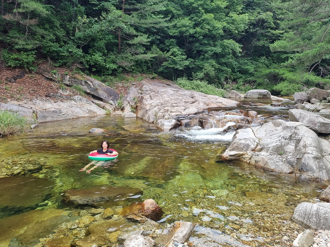 캠핑장 근처에 엄둔계곡이 있어서 맑은 물에서 수영을 실컷 할 수 있었다. 그것도 마치 전세 낸 것처럼! 금요일부터 일요일까지 2박 3일 캠핑했는데 금요일은 캠핑장에 우리만 있었다. 아~ 이런 것이 전세캠? 계속 누가 오겠지 했는데 밤이 새도록 결국 큰 캠핑장에 우리만 있었다. 사장님께는 죄송하지만, 우리는 너무 좋았다.