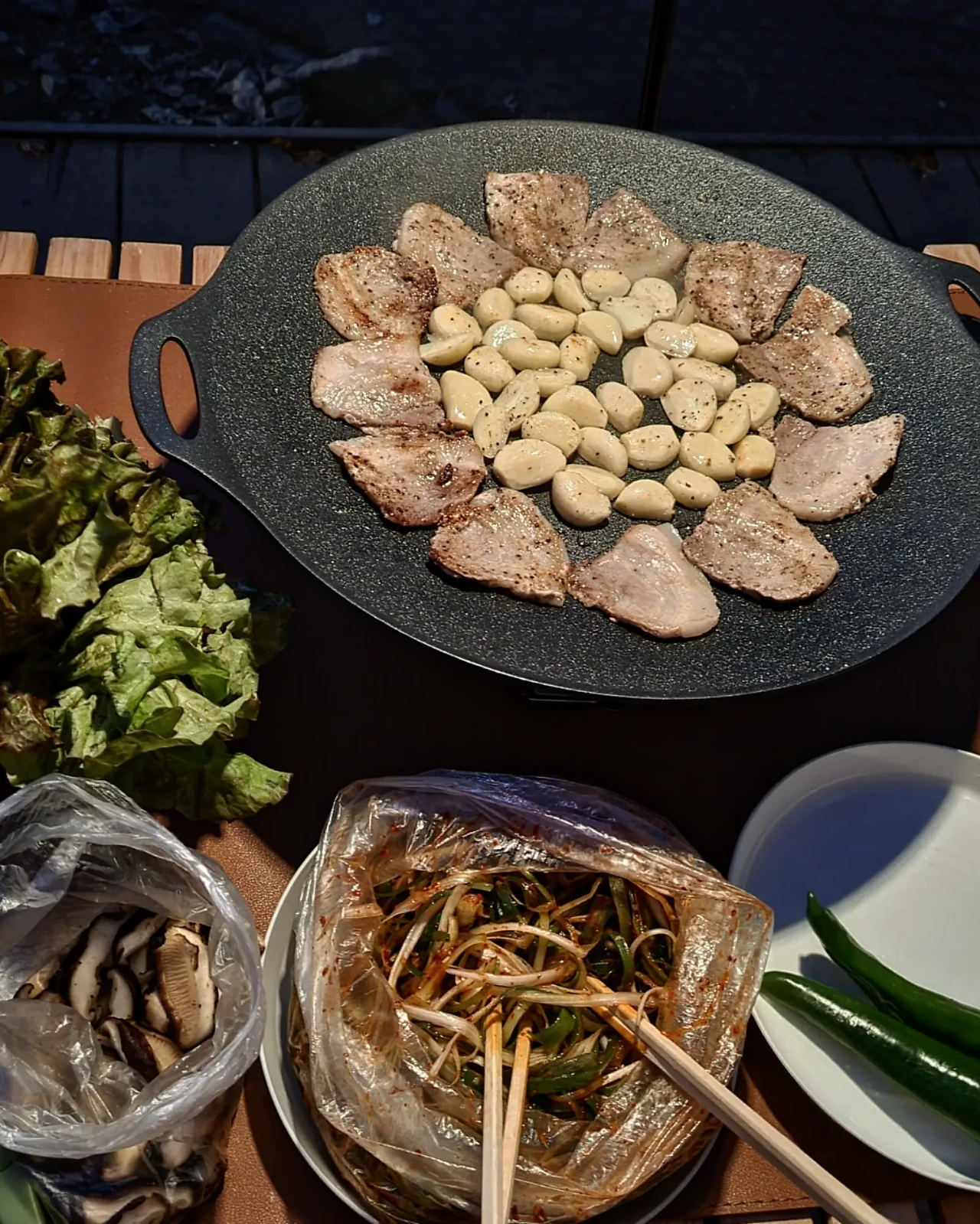 그리고 캠핑에서는 '사서 고생'도 낭만이 된다. 분명히 불편한데, 왜 불편함도 용서되고 오히려 낭만적으로 느껴지는 걸까? 텐트를 치고 테이블과 의자를 펴면서 세팅하는 과정, 음식을 만들고 치우는 과정, 멀리 있는 화장실에 다녀오는 과정들이 어찌 보면 불편하고 고생스러운 것들인데, 내 손으로 직접 만들어나가는 과정에서 오히려 재미와 보람을 느낀다. 고생스럽기 때문에 오히려 더 소중한? 아니러니 하지만, 캠핑은 고생한 만큼 나중에 더 좋은 추억으로 남는다.
