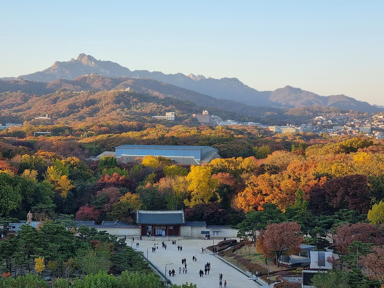 점심을 만족스럽게 먹고 광화문 근처에 있는 '대한민국역사박물관'으로 향했다. 박물관이 목적이었다기보다는 여기 8층 옥상 전망대 뷰가 멋있다는 유튜브 리뷰를 보고 찾아갔다. 박물관에 도착해서 바로 전망대로 올라가 탁 트인 서울 한복판을 감상했다. 새파란 하늘 아래 경복궁과 청와대, 멀리 단풍으로 예쁘게 물든 산새까지 깨끗하게 훤히 보였다. 서울이 이렇게도 아름답다니! 알고 있었지만, 새삼 또 느끼는 순간이었다.