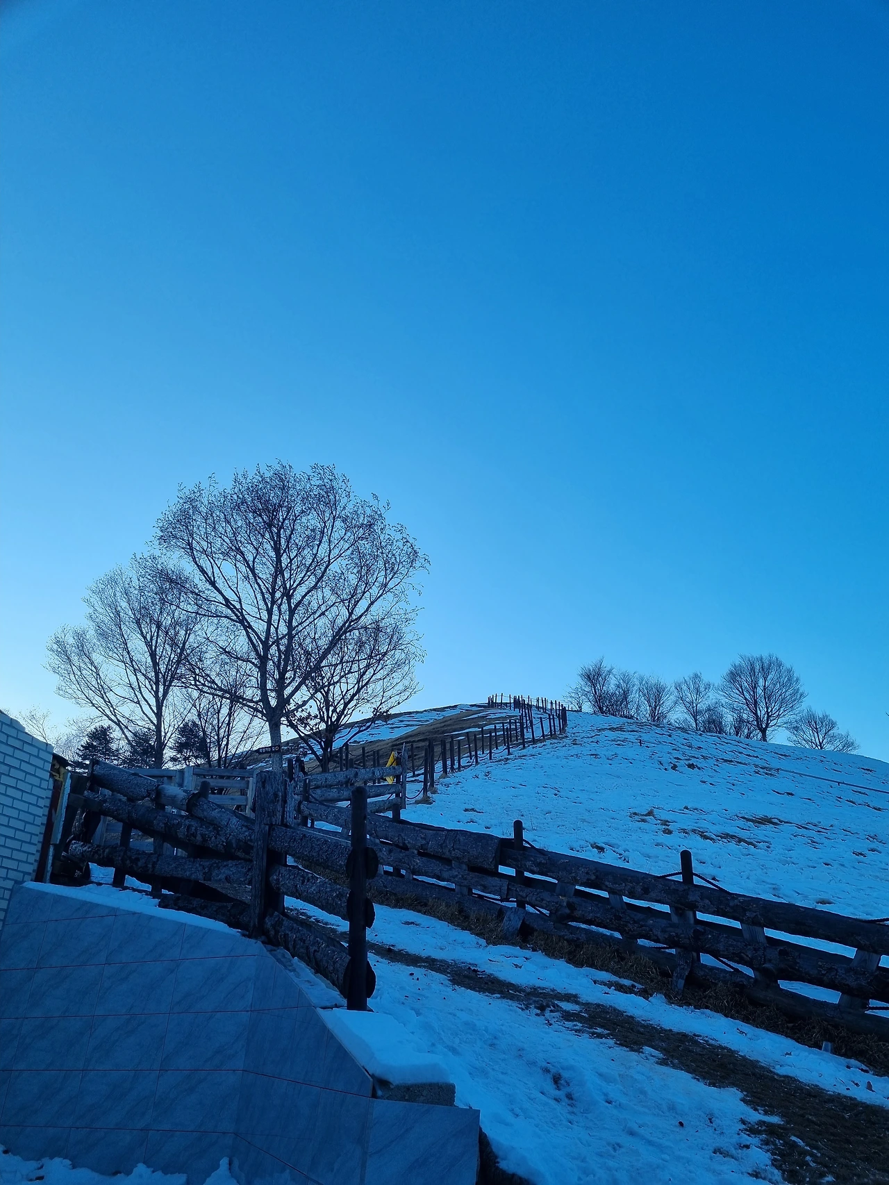 강원도 여행의 첫 시작은 '평창'이었다. 언니네 가족이 평창에 스키를 타러 가서 저녁에 잠깐 들러 술 한잔 기울이며 소소하게 가족모임을 하고, 어두워진 스키장을 먼발치에서 구경만 했다. 슬로프의 아찔한 높이에 절로 몸이 으스스 떨리는 기분이었다.