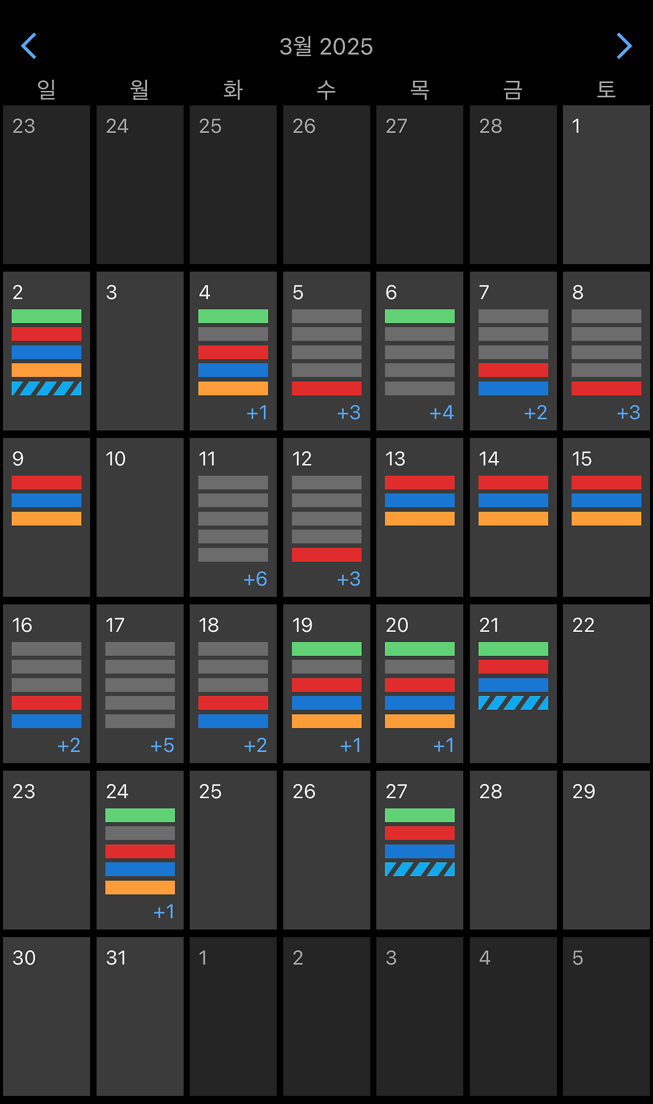 사진에 보시다시피, 그래도 여행(3월 5일부터 18일)에서 돌아온 다음 날 19일부터 21일까지 달리기에 대한 갈증 때문에 연속으로 달린 게 보일 것이다. 다음 주부터 주춤하긴 했지만… 일주일에 5km씩 세 번 정도 달리면, 달리기 좋아하는 거 맞지 않나?