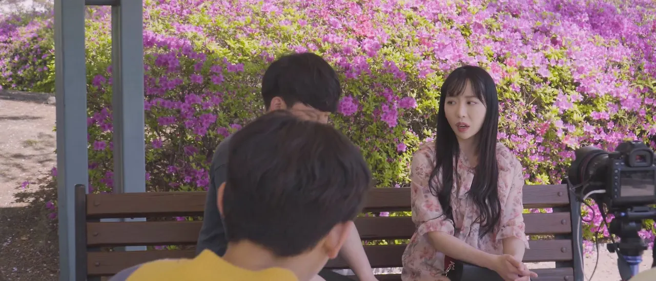 태풍, 이현, 덕재. 지영과 덕희 연기하는 걸 촬영하고 있다.