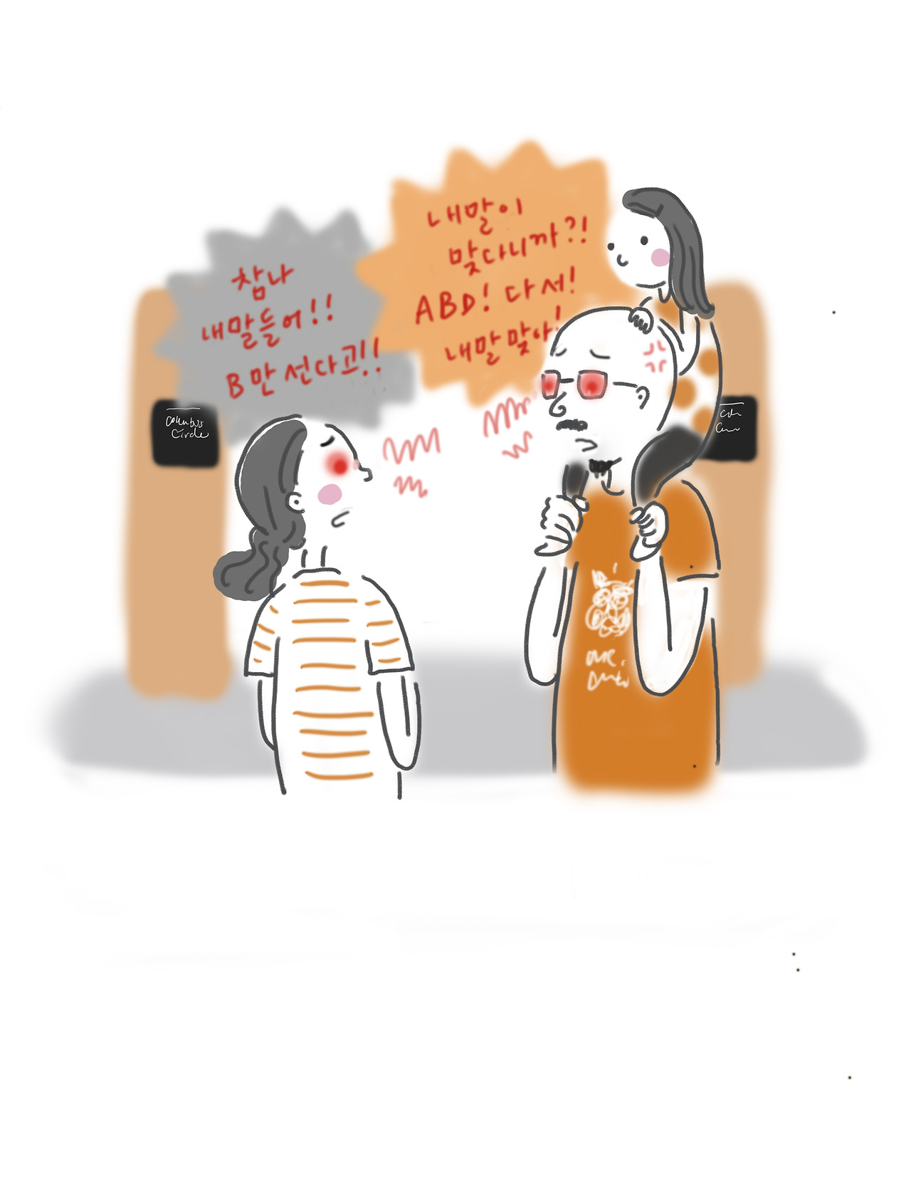 아니야 그게 아니야 내말이 맞아?!!!??? 하는데